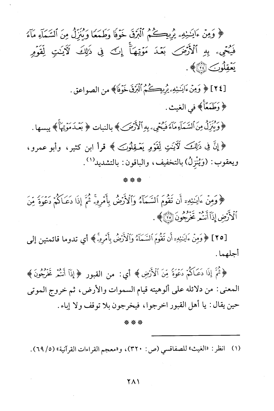 [25] {وَمِنْ آيَاتِهِ أَنْ تَقُومَ السَّمَاءُ وَالْأَرْضُ بِأَمْرِهِ} أي تدوما قائمتين إلى أجلهما.