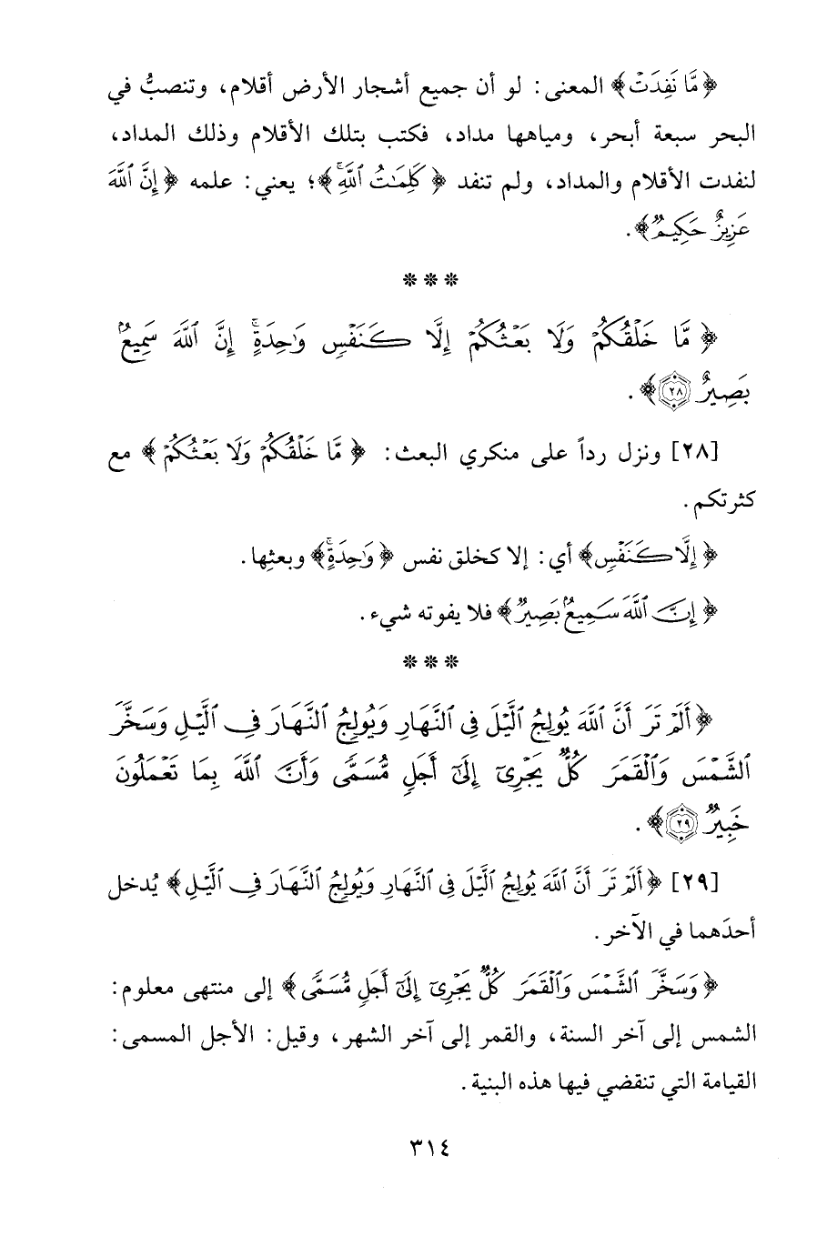 [29] {أَلَمْ تَرَ أَنَّ اللَّهَ يُولِجُ اللَّيْلَ فِي النَّهَارِ وَيُولِجُ النَّهَارَ فِي اللَّيْلِ} يُدخل أحدَهما في الآخر.