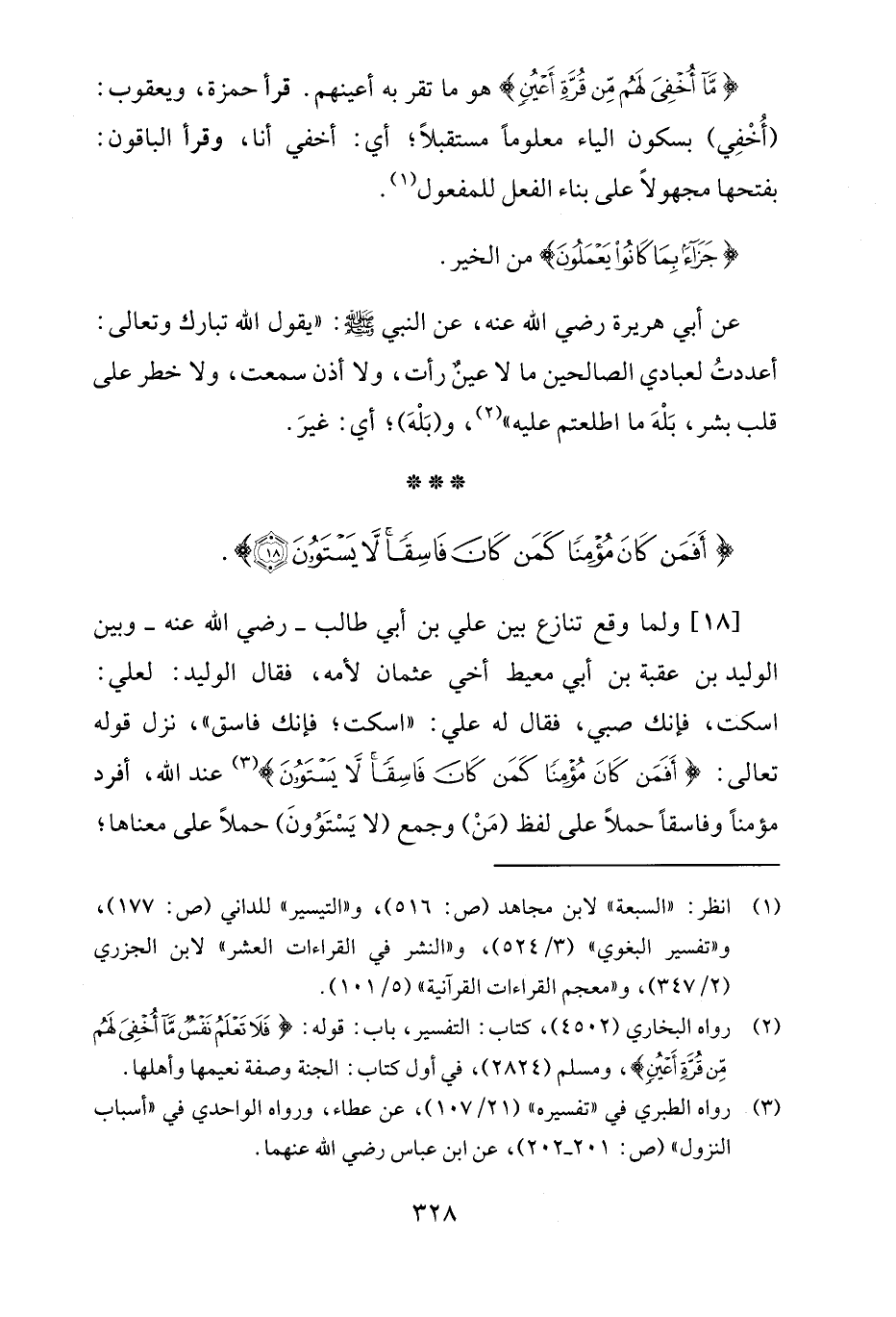 {أَفَمَنْ كَانَ مُؤْمِنًا كَمَنْ كَانَ فَاسِقًا لَا يَسْتَوُونَ (18)}.