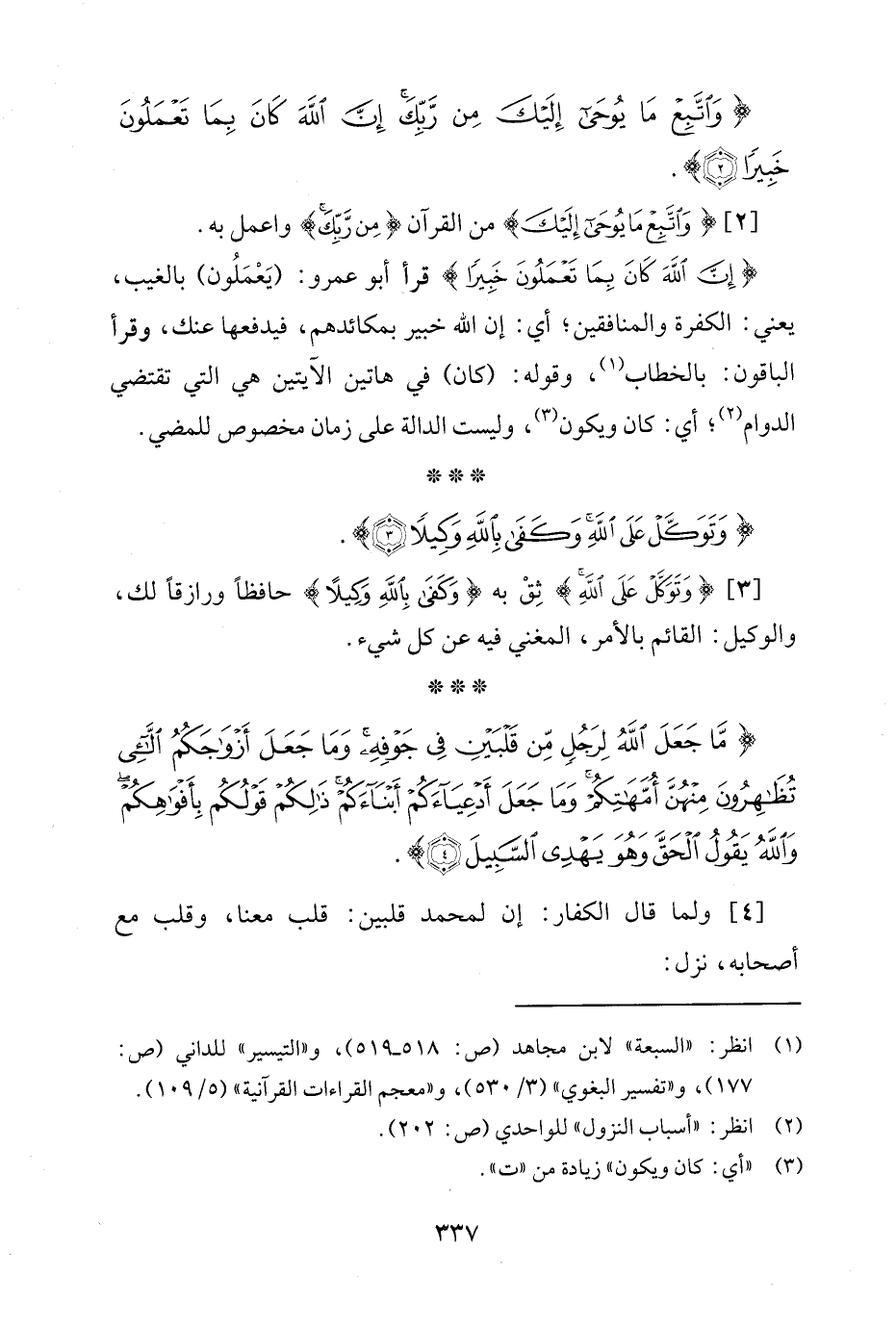 [3] {وَتَوَكَّلْ عَلَى اللَّهِ} ثِقْ به {وَكَفَى بِاللَّهِ وَكِيلًا} حافظًا ورازقًا لك، والوكيل: القائم بالأمر، المغني فيه عن كل شيء.
