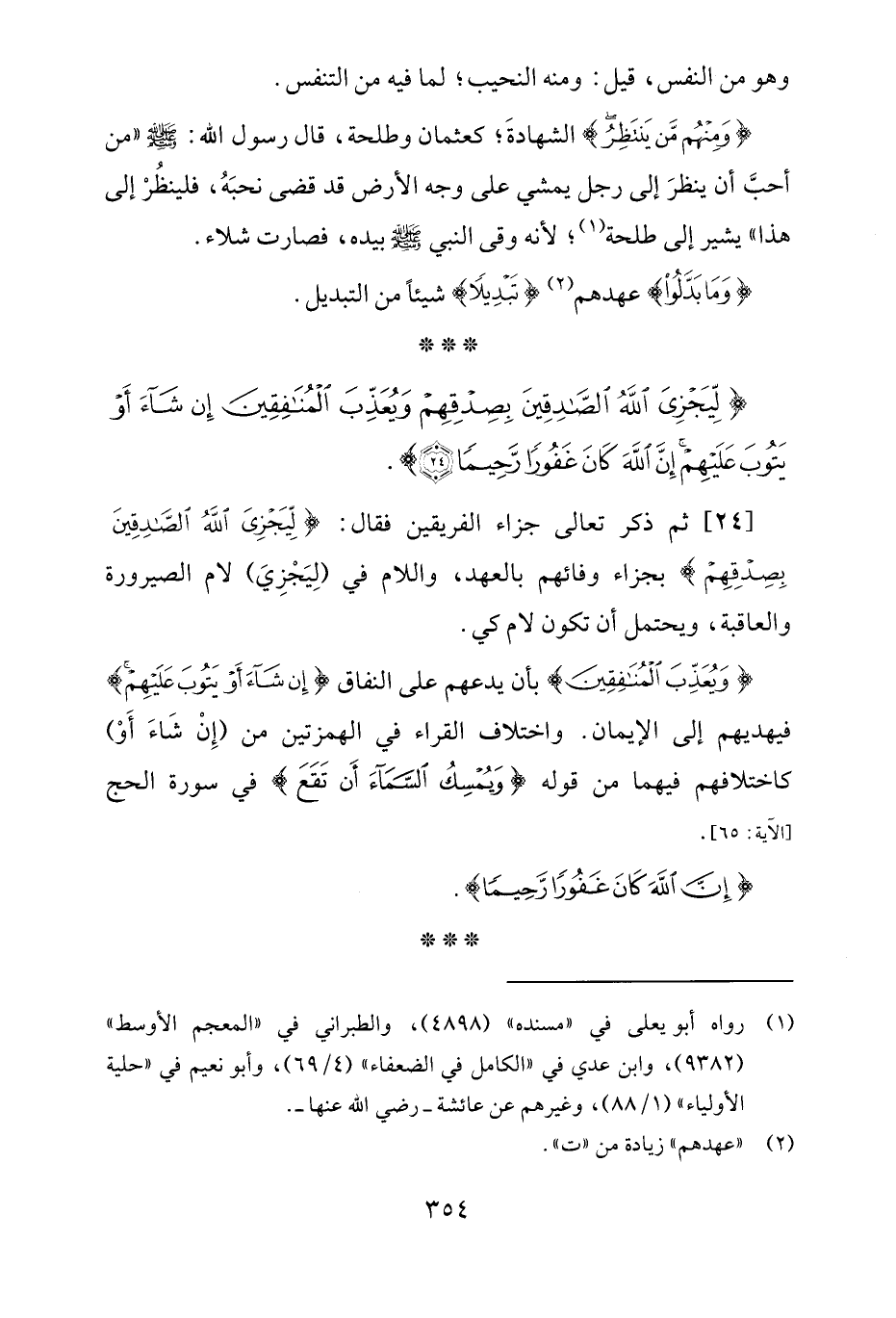 {لِيَجْزِيَ اللَّهُ الصَّادِقِينَ بِصِدْقِهِمْ وَيُعَذِّبَ الْمُنَافِقِينَ إِنْ شَاءَ أَوْ يَتُوبَ عَلَيْهِمْ إِنَّ اللَّهَ كَانَ غَفُورًا رَحِيمًا (24)}.