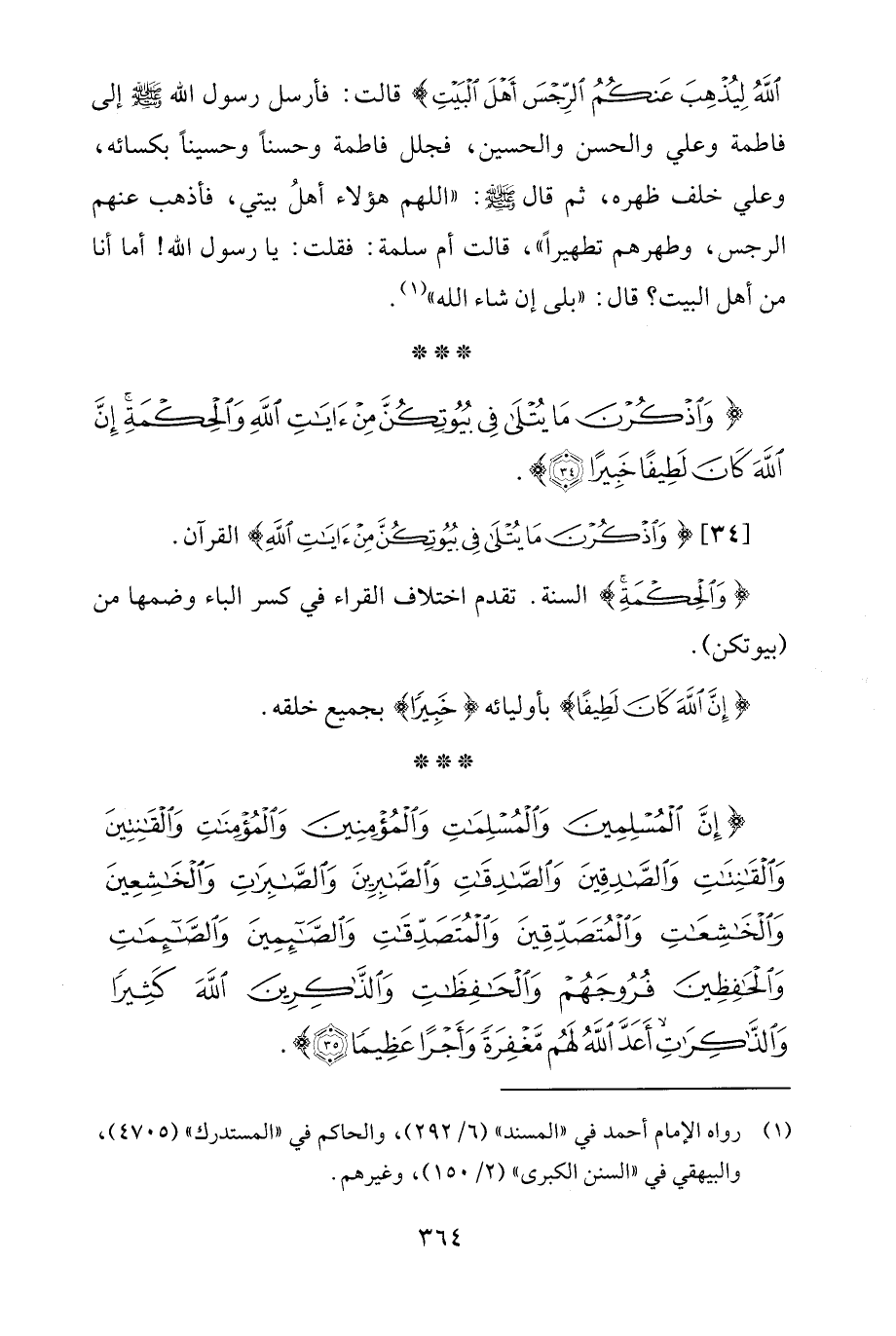 {وَاذْكُرْنَ مَا يُتْلَى فِي بُيُوتِكُنَّ مِنْ آيَاتِ اللَّهِ وَالْحِكْمَةِ إِنَّ اللَّهَ كَانَ لَطِيفًا خَبِيرًا (34)}.
