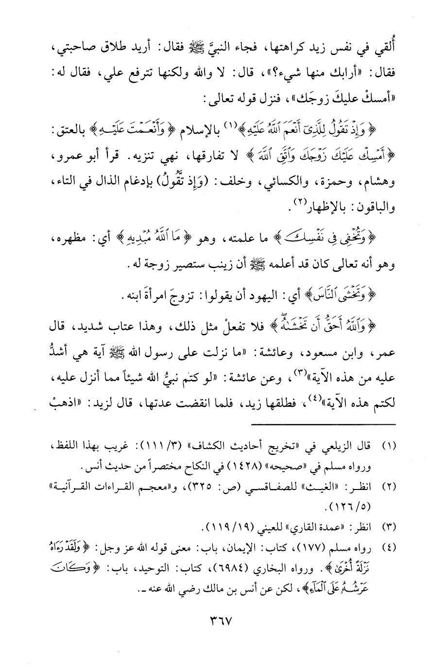 {وَإِذْ تَقُولُ لِلَّذِي أَنْعَمَ اللَّهُ عَلَيْهِ} (¬1) بالإسلام {وَأَنْعَمْتَ عَلَيْهِ} بالعتق: {أَمْسِكْ عَلَيْكَ زَوْجَكَ وَاتَّقِ اللَّهَ} لا تفارقها، نهي تنزيه. قرأ أبو عمرو، وهشام، وحمزة، والكسائي، وخلف: (وَإِذ تَّقُولُ) بإدغام الذال في التاء، والباقون: بالإظهار (¬2).
