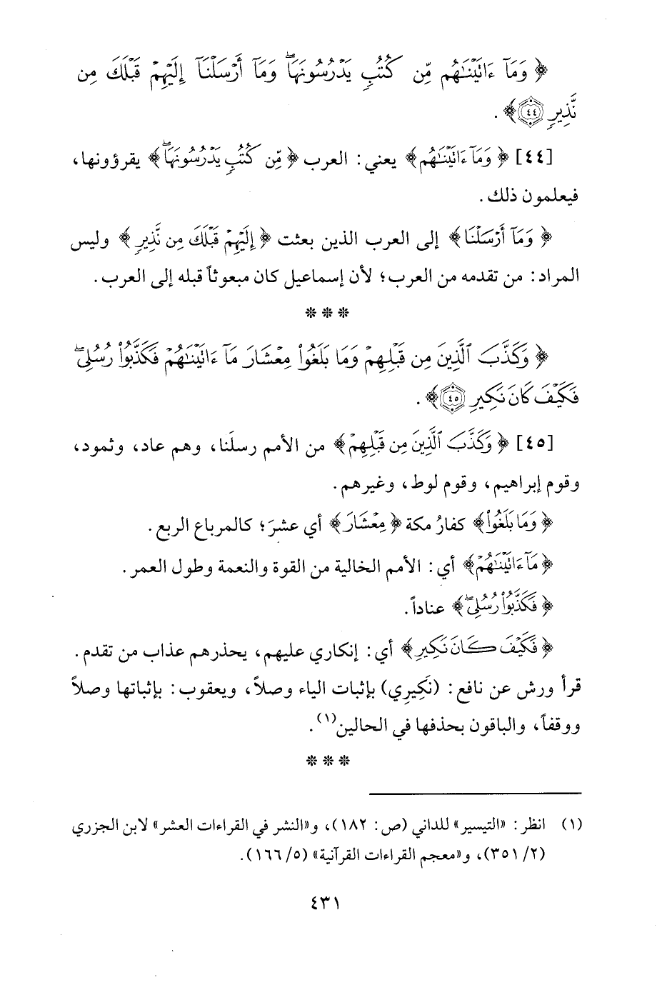 {وَكَذَّبَ الَّذِينَ مِنْ قَبْلِهِمْ وَمَا بَلَغُوا مِعْشَارَ مَا آتَيْنَاهُمْ فَكَذَّبُوا رُسُلِي فَكَيْفَ كَانَ نَكِيرِ (45)}.