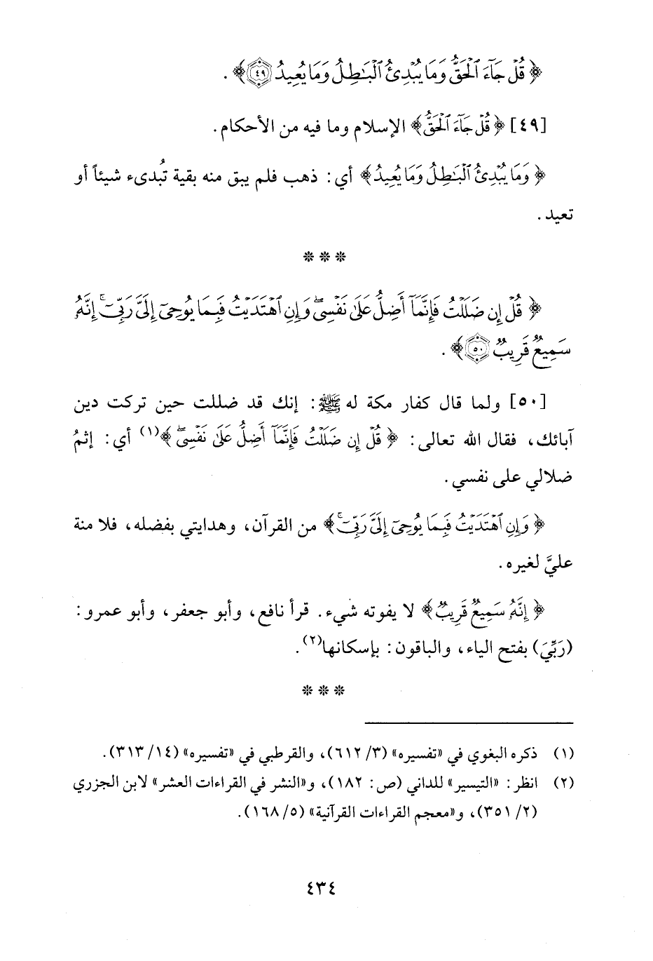 {قُلْ إِنْ ضَلَلْتُ فَإِنَّمَا أَضِلُّ عَلَى نَفْسِي وَإِنِ اهْتَدَيْتُ فَبِمَا يُوحِي إِلَيَّ رَبِّي إِنَّهُ سَمِيعٌ قَرِيبٌ (50)}.