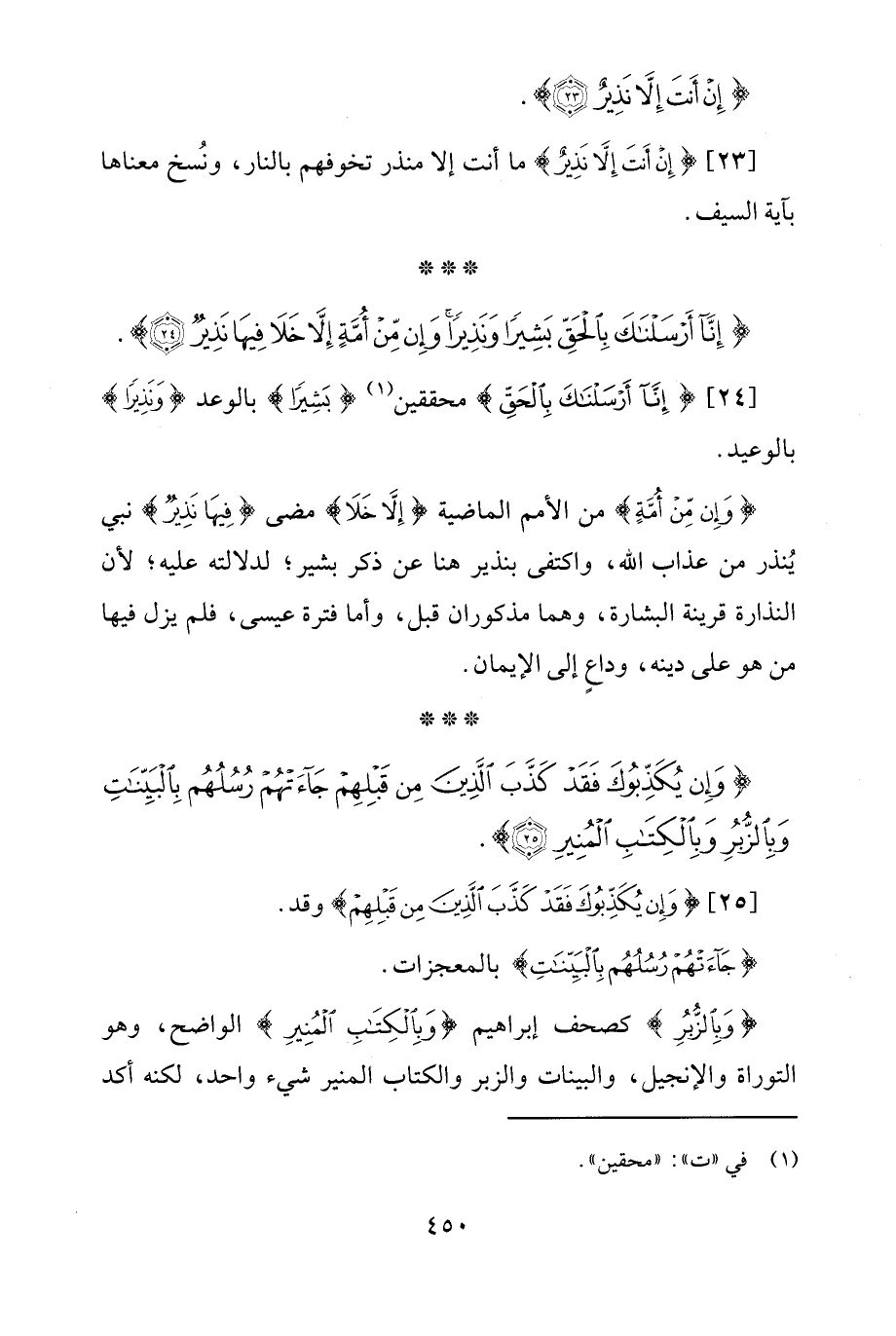 [25] {وَإِنْ يُكَذِّبُوكَ فَقَدْ كَذَّبَ الَّذِينَ مِنْ قَبْلِهِمْ} وقد.