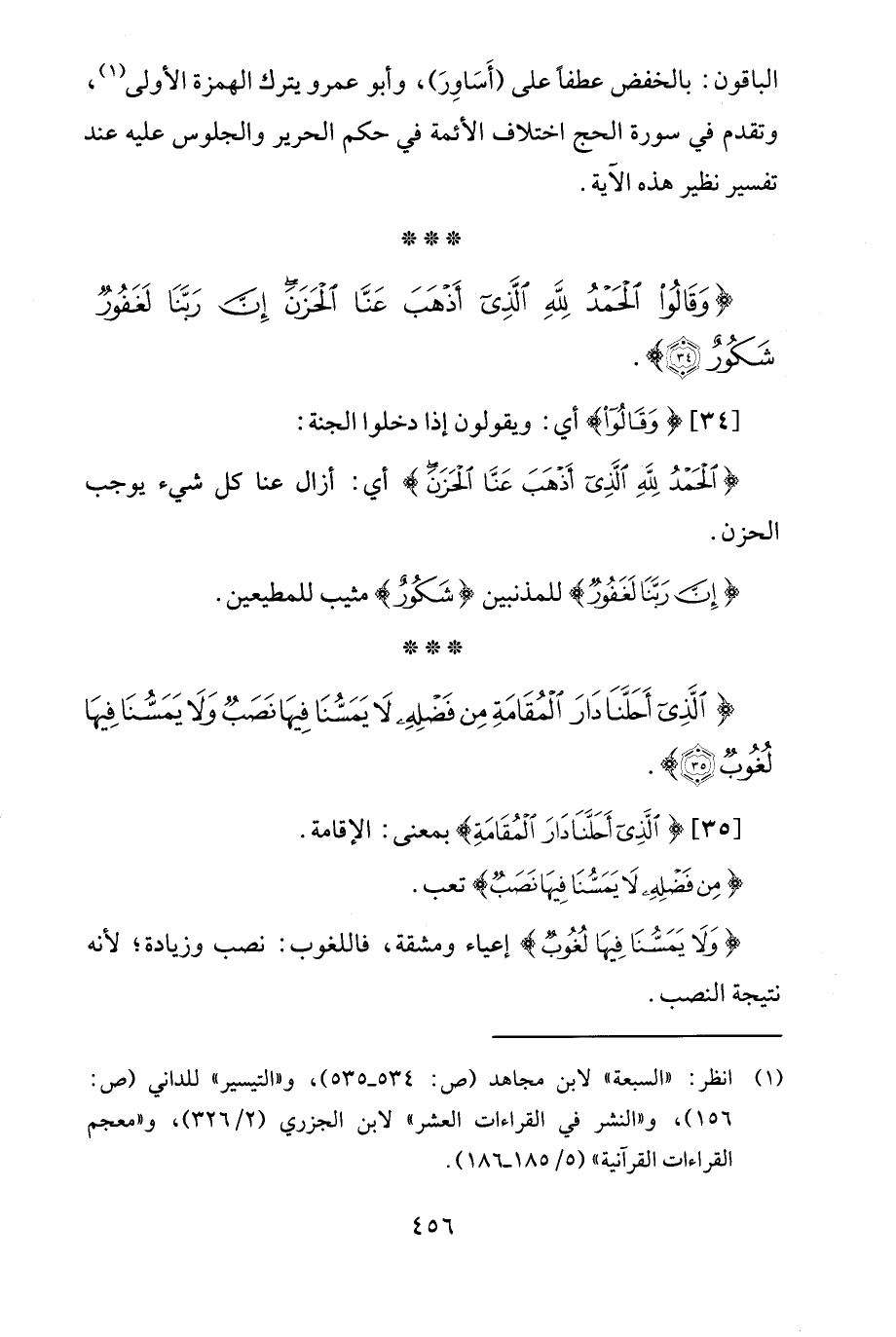 {وَقَالُوا الْحَمْدُ لِلَّهِ الَّذِي أَذْهَبَ عَنَّا الْحَزَنَ إِنَّ رَبَّنَا لَغَفُورٌ شَكُورٌ (34)}.
