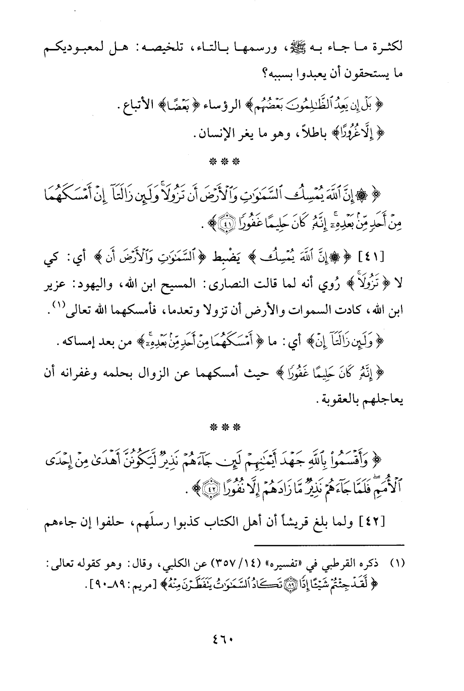 {إِنَّ اللَّهَ يُمْسِكُ السَّمَاوَاتِ وَالْأَرْضَ أَنْ تَزُولَا وَلَئِنْ زَالَتَا إِنْ أَمْسَكَهُمَا مِنْ أَحَدٍ مِنْ بَعْدِهِ إِنَّهُ كَانَ حَلِيمًا غَفُورًا (41)}.