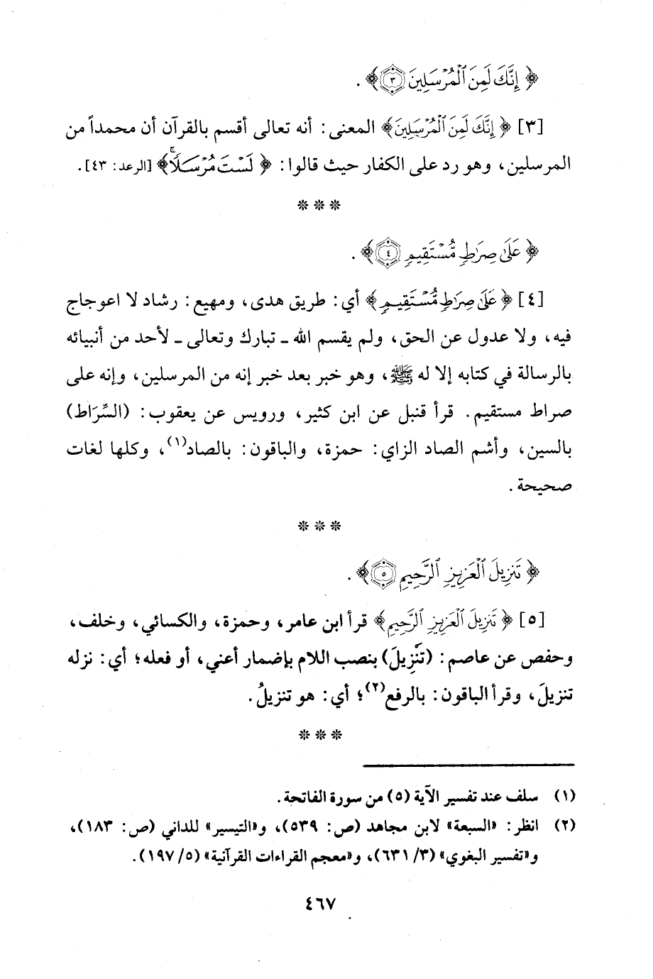 [5] {تَنْزِيلَ الْعَزِيزِ الرَّحِيمِ} قرأ ابن عامر، وحمزة، والكسائي، وخلف، وحفص عن عاصم: (تَنْزِيلَ) بنصب اللام بإضمار أعني، أو فعله؛ أي: نزله تنزيلَ، وقرأ الباقون: بالرفع (¬2)؛ أي: هو تنزيلُ.