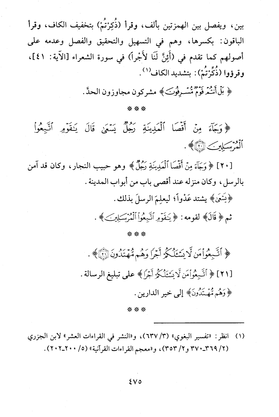 {وَجَاءَ مِنْ أَقْصَى الْمَدِينَةِ رَجُلٌ يَسْعَى قَالَ يَاقَوْمِ اتَّبِعُوا الْمُرْسَلِينَ (20)}.