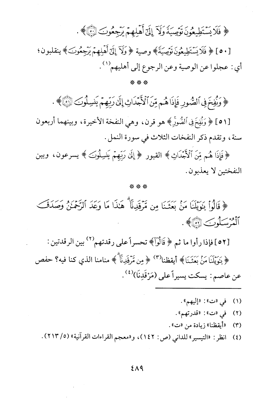 {وَنُفِخَ فِي الصُّورِ فَإِذَا هُمْ مِنَ الْأَجْدَاثِ إِلَى رَبِّهِمْ يَنْسِلُونَ (51)}.