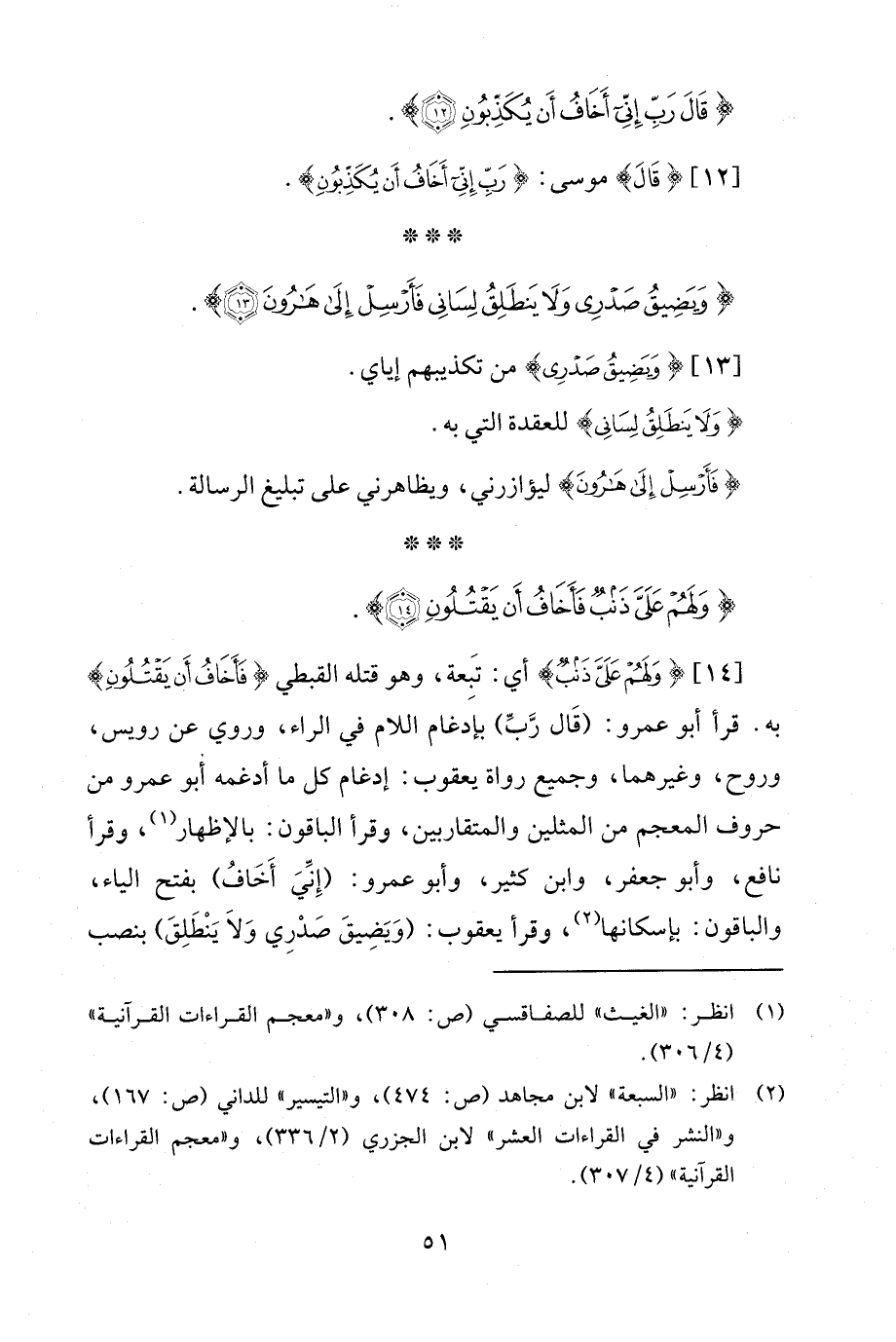 [12] {قَالَ} موسى: {رَبِّ إِنِّي أَخَافُ أَنْ يُكَذِّبُونِ}.