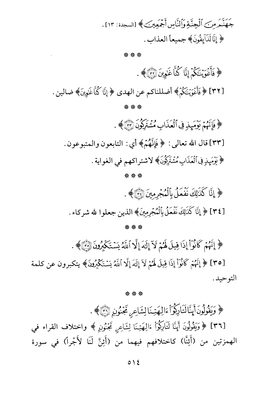 [35] {إِنَّهُمْ كَانُوا إِذَا قِيلَ لَهُمْ لَا إِلَهَ إِلَّا اللَّهُ يَسْتَكْبِرُونَ} يتكبرون عن كلمة التوحيد.