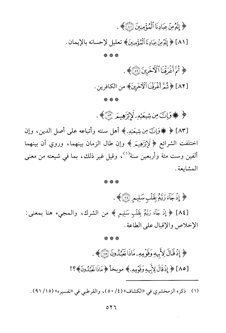 [84] {إِذْ جَاءَ رَبَّهُ بِقَلْبٍ سَلِيمٍ} من الشرك، والمجيء هنا بمعنى: الإخلاص والإقبال على الطاعة.