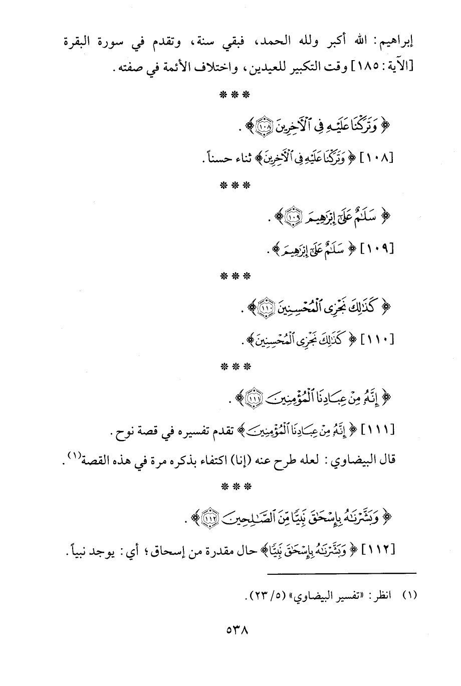 [112] {وَبَشَّرْنَاهُ بِإِسْحَاقَ نَبِيًّا} حال مقدرة من إسحاق؛ أي: يوجد نبيًّا.