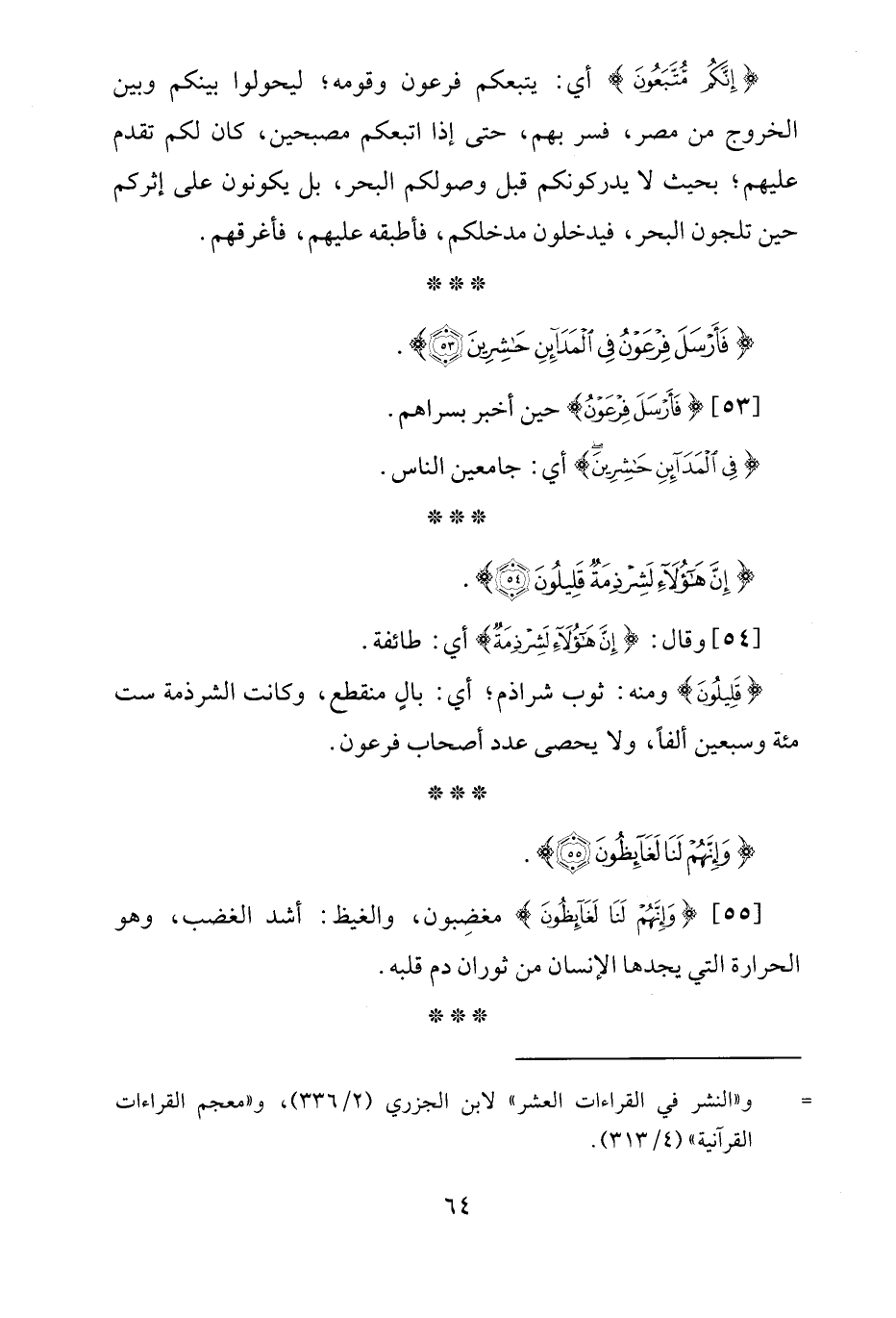 {إِنَّكُمْ مُتَّبَعُونَ} أي: يتبعكم فرعون وقومه؛ ليحولوا بينكم وبين الخروج من مصر، فسر بهم، حتى إذا اتبعكم مصبحين، كان لكم تقدم عليهم؛ بحيث لا يدركونكم قبل وصولكم البحر، بل يكونون على إثركم حين تلجون البحر، فيدخلون مدخلكم، فأطبقه عليهم، فأغرقهم.