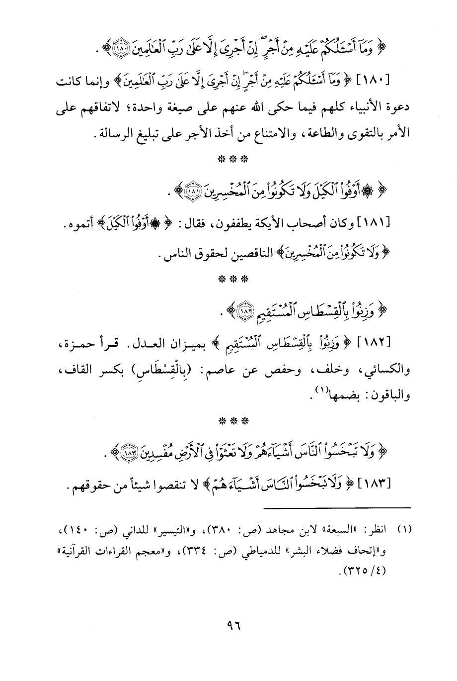 {أَوْفُوا الْكَيْلَ وَلَا تَكُونُوا مِنَ الْمُخْسِرِينَ (181)}.
