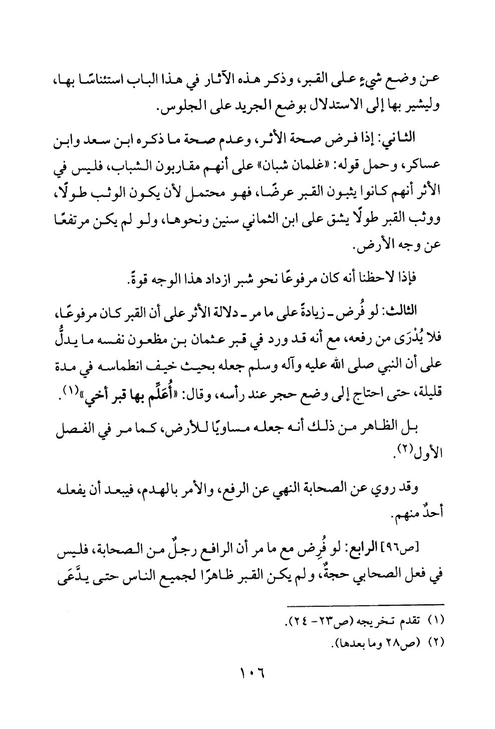 [ص ٩٦] الرابع: لو فُرِض مع ما مر أن الرافع رجلٌ من الصحابة، فليس في فعل الصحابي حجةٌ، ولم يكن القبر ظاهرًا لجميع الناس حتى يدَّعَى