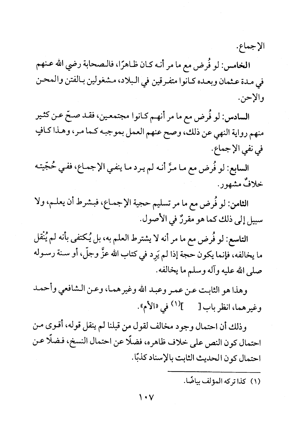 التاسع: لو فُرض مع ما مر أنه لا يشترط العلم به، بل يُكتفى بأنه لم يُنْقل ما يخالفه، فإنما يكون حجة إذا لم يَرِد في كتاب الله عزَّ وجلّ، أو سنة رسوله صلى الله عليه وآله وسلم ما يخالفه.