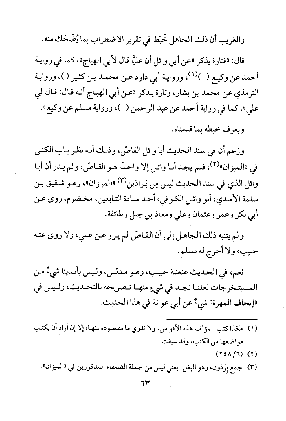 وزعم أن في سند الحديث أبا وائل القاصّ، وذلك أنه نظر باب الكنى في "الميزان" (¬٢)، فلم يجد أبا وائل إلا واحدًا هو القاصّ، ولم يدر أن أبا وائل الذي في سند الحديث ليس مِن بَراذين (¬٣) "الميزان"، وهو شقيق بن سلمة الأسدي، أبو وائل الكوفي، أحد سادة التابعين، مخضرم، روى عن أبي بكر وعمر وعثمان وعلي ومعاذ بن جبل وطائفة.