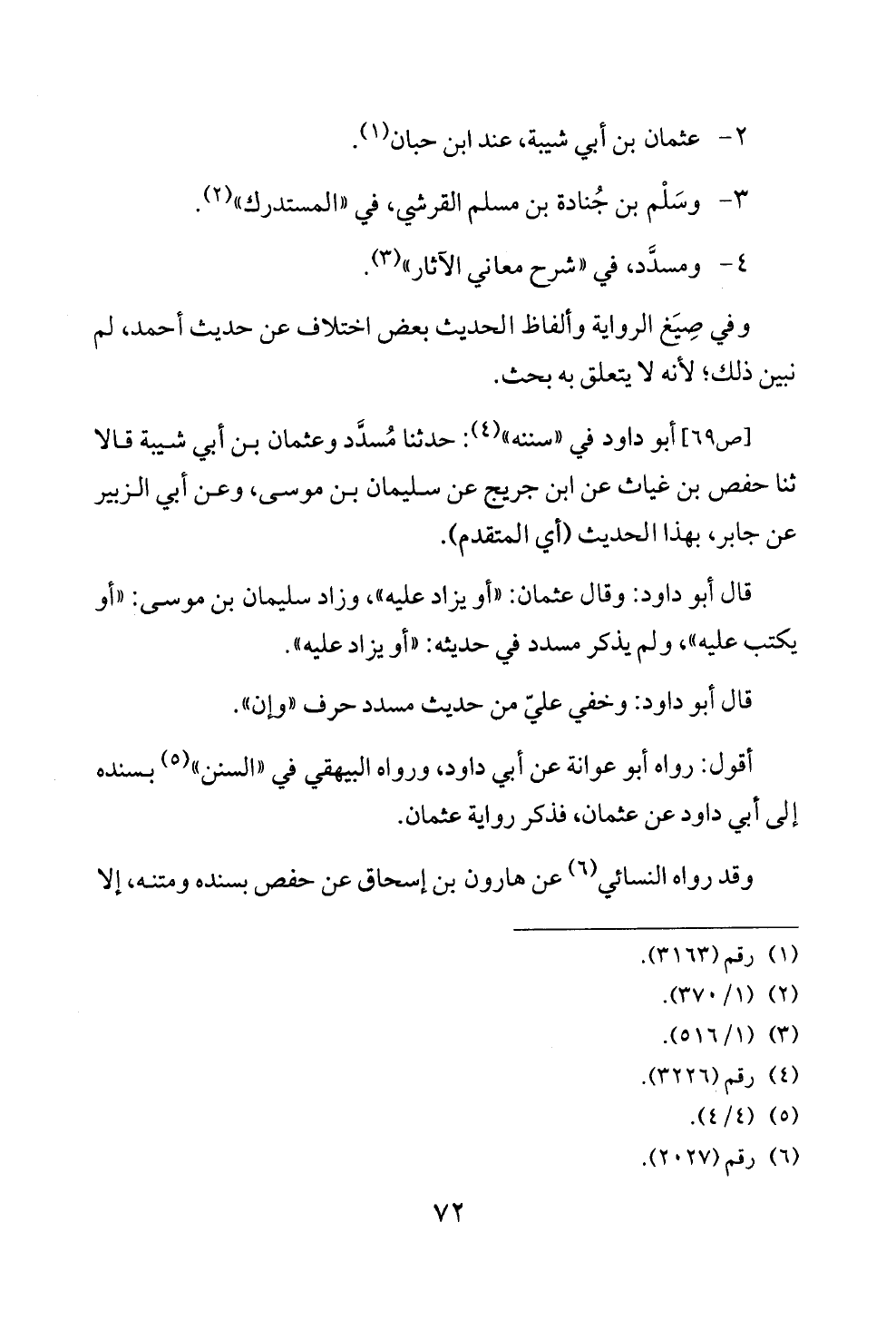 [ص ٦٩] أبو داود في "سننه" (¬٤): حدثنا مُسدَّد وعثمان بن أبي شيبة قالا ثنا حفص بن غياث عن ابن جريج عن سليمان بن موسى، وعن أبي الزبير عن جابر، بهذا الحديث (أي المتقدم).
