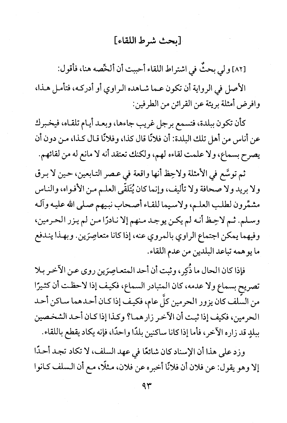 [٨٢] ولي بحثٌ في اشتراط اللقاء أحببت أن ألخِّصه هنا، فأقول: