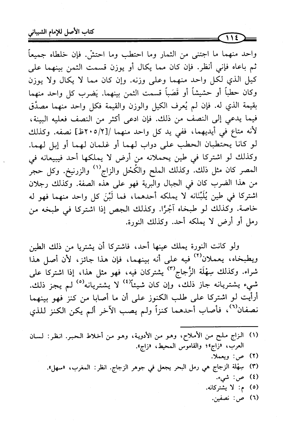 واحد منهما ما اجتنى من الثمار وما احتطب وما احتشّ. فإن خلطاه جميعاً ثم باعاه فإني أنظر. فإن كان مما يكال أو يوزن قسمت الثمن بينهما على كيل الذي لكل واحد منهما وعلى وزنه. وإن كان مما لا يكال ولا يوزن وكان حطباً أو حشيشاً أو قَصَباً قسمت الثمن بينهما. يَضرب كل واحد منهما بقيمة الذي له. فإن لم يُعرف الكيل والوزن والقيمة فكل واحد منهما مصدَّق فيما يدعي إلى النصف من ذلك. فإن ادعى أكثر من النصف فعليه البينة، لأنه متاع في أيديهما، ففي يد كل واحد منهما نصفه. وكذلك لو كانا يحتطبان الحطب على دواب لهما أو غلمان لهما أو إبل لهما. وكذلك لو اشتركا في طين يحملانه من أرض لا يملكها أحد فيبيعانه في المصر كان مثل ذلك. وكذلك الملح والكُحْل والزاج (¬1) والزرنيخ. وكل حجر من هذا الضرب كان في الجبال والبرية فهو على هذه الصفة. وكذلك رجلان اشتركا في طين يُلَبِّنَانه لا يملكه أحدهما، فما لَبَّنَ كل واحد منهما فهو له خاصة. وكذلك لوطبخاه آجُرًّا. وكذلك الجص إذا اشتركا في طبخه من رمل أو أرض لا يملكه أحد. وكذلك النورة.