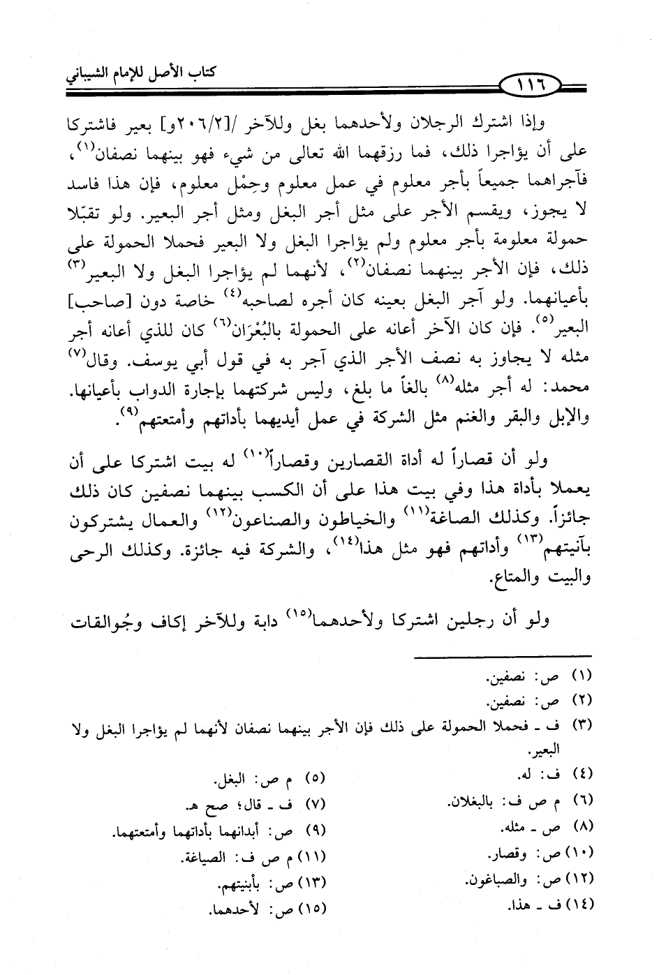 وإذا اشترك الرجلان ولأحدهما بغل وللآخر بعير فاشتركا على أن يؤاجرا ذلك، فما رزقهما الله تعالى من شيء فهو بينهما نصفان (¬1)، فآجراهما جميعاً بأجر معلوم في عمل معلوم وحِمْل معلوم، فإن هذا فاسد لا يجوز، ويقسم الأجر على مثل أجر البغل ومثل أجر البعير. ولو تقبّلا حمولة معلومة بأجر معلوم ولم يؤاجرا البغل ولا البعير فحملا الحمولة على ذلك، فإن الأجر بينهما نصفان (¬2)، لأنهما لم يؤاجرا البغل ولا البعير (¬3) بأعيانهما. ولو آجر البغل بعينه كان أجره لصاحبه (¬4) خاصة دون أصاحب، البعير (¬5). فإن كان الآخر أعانه على الحمولة بالبُعْرَان (¬6) كان للذي أعانه أجر مثله لا يجاوز به نصف الأجر الذي آجر به في قول أبي يوسف. وقال (¬7) محمد: له أجر مثله (¬8) بالغاً ما بلغ، وليس شركتهما بإجارة الدواب بأعيانها. والإبل والبقر والغنم مثل الشركة في عمل أيديهما بأداتهم وأمتعتهم (¬9).
