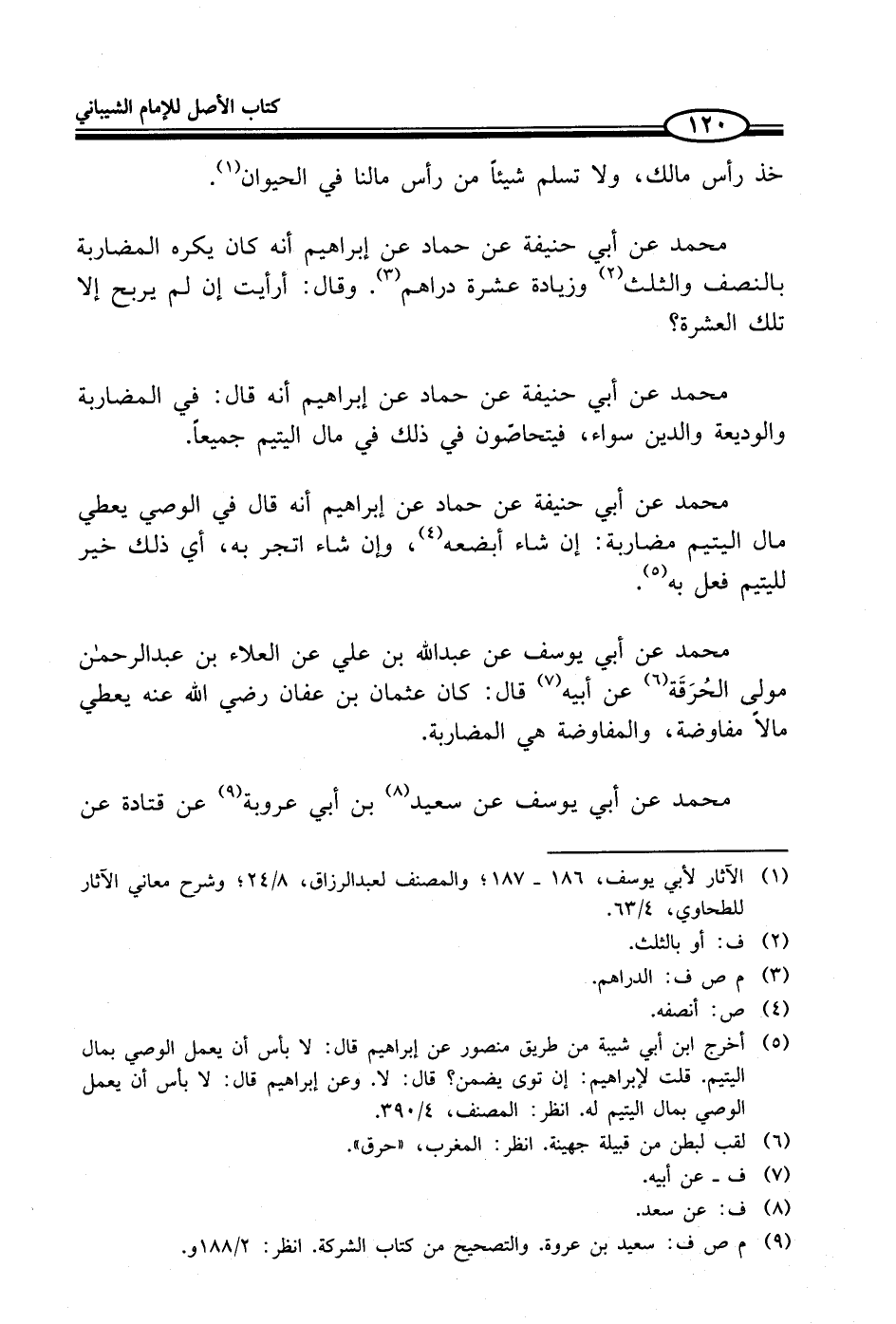 (¬1) الآثار لأبي يوسف، 186 - 187؛ والمصنف لعبد الرزاق، 8/ 24؛ وشرح معاني الآثار للطحاوي، 4/ 63.