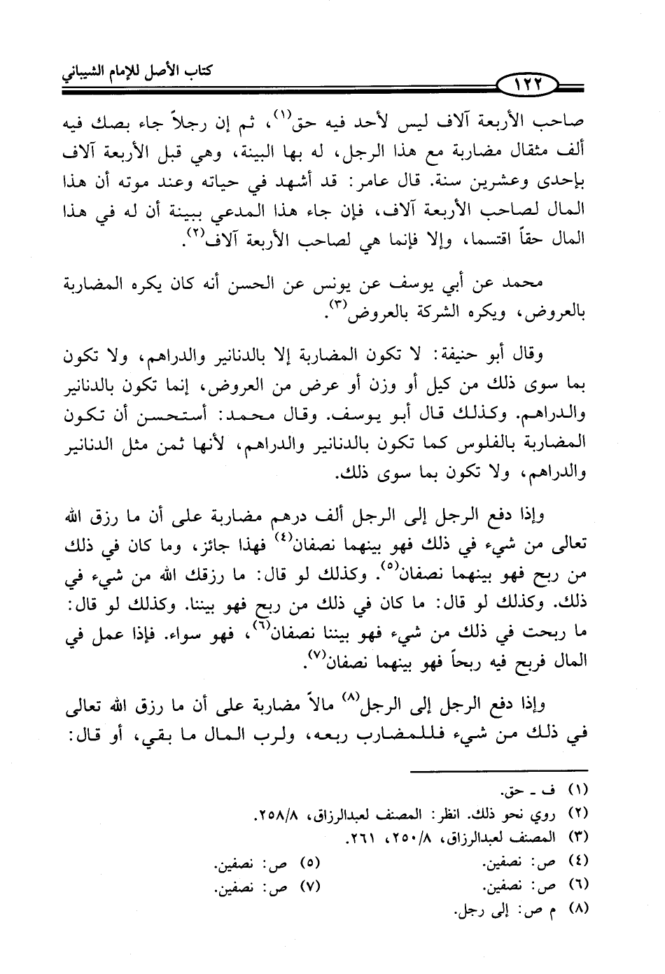 محمد عن أبي يوسف عن يونس عن الحسن أنه كان يكره المضاربة بالعروض، ويكره الشركة بالعروض (¬3).