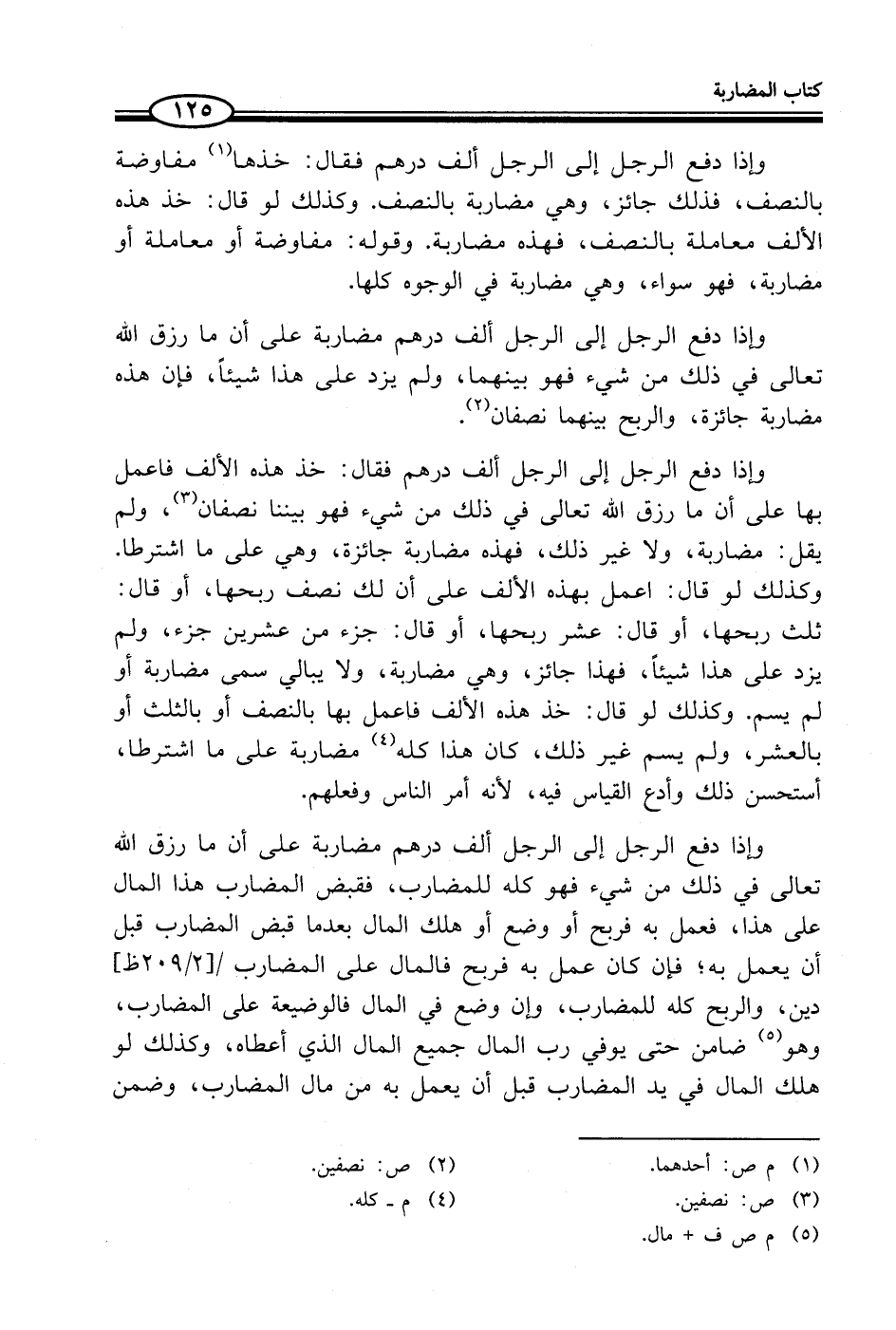 وإذا دفع الرجل إلى الرجل ألف درهم فقال: خذ هذه الألف فاعمل بها على أن ما رزق الله تعالى في ذلك من شيء فهو بيننا نصفان (¬3)، ولم يقل: مضاربة، ولا غير ذلك، فهذه مضاربة جائزة، وهي على ما اشترطا. وكذلك لو قال: اعمل بهذه الألف على أن لك نصف ربحها، أو قال: ثلث ربحها، أو قال: عشر ربحها، أو قال: جزء من عشرين جزء، ولم يزد على هذا شيئاً، فهذا جائز، وهي مضاربة، ولا يبالي سمى مضاربة أو لم يسم. وكذلك لو قال: خذ هذه الألف فاعمل بها بالنصف أو بالثلث أو بالعشر، ولم يسم غير ذلك، كان هذا كله (¬4) مضاربة على ما اشترطا، أستحسن ذلك وأدع القياس فيه، لأنه أمر الناس وفعلهم.