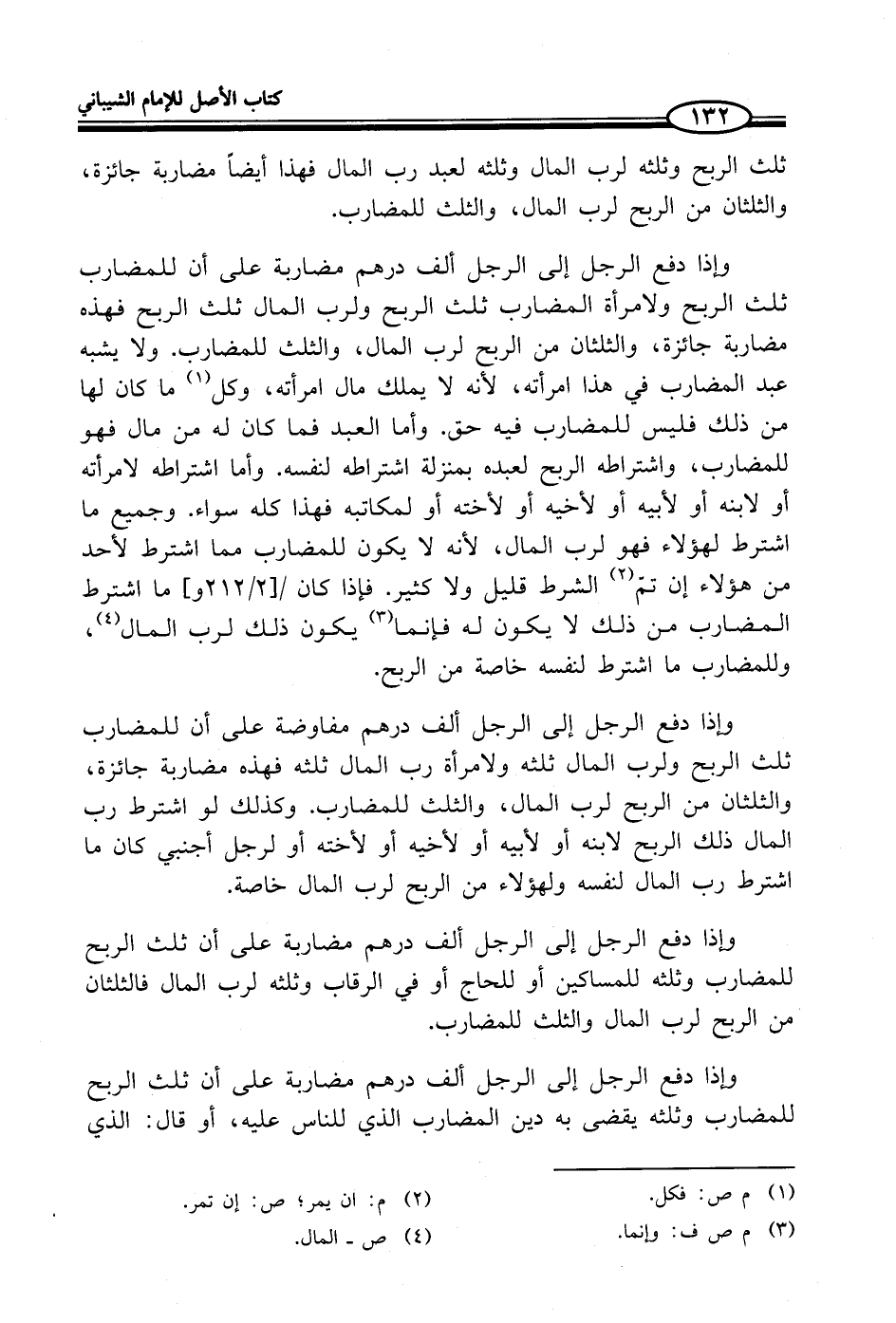وإذا دفع الرجل إلى الرجل ألف درهم مضاربة على أن للمضارب ثلث الربح ولامرأة المضارب ثلث الربح ولرب المال ثلث الربح فهذه مضاربة جائزة، والثلثان من الربح لرب المال، والثلث للمضارب. ولا يشبه عبد المضارب في هذا امرأته، لأنه لا يملك مال امرأته، وكل (¬1) ما كان لها من ذلك فليس للمضارب فيه حق. وأما العبد فما كان له من مال فهو للمضارب، واشتراطه الربح لعبده بمنزلة اشتراطه لنفسه. وأما اشتراطه لامرأته أو لابنه أو لأبيه أو لأخيه أو لأخته أو لمكاتبه فهذا كله سواء. وجميع ما اشترط لهؤلاء فهو لرب المال، لأنه لا يكون للمضارب مما اشترط لأحد من هؤلاء إن تتم (¬2) الشرط قليل ولا كثير. فإذا كان ما اشترط المضارب من ذلك لا يكون له فإنما (¬3) يكون ذلك لرب المال (¬4)، وللمضارب ما اشترط لنفسه خاصة من الربح.