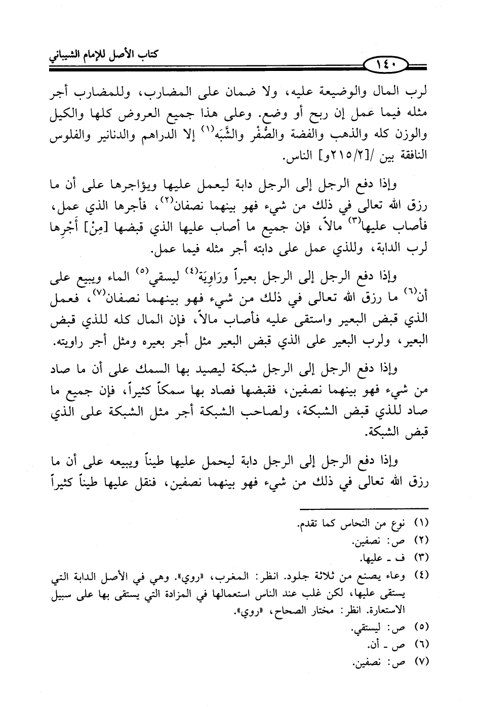 وإذا دفع الرجل إلى الرجل بعيراً ورَاوِيَة (¬4) ليسقي (¬5) الماء ويبيع على أن (¬6) ما رزق الله تعالى في ذلك من شيء فهو بينهما نصفان (¬7)، فعمل الذي قبض البعير واستقى عليه فأصاب مالاً، فإن المال كله للذي قبض البعير، ولرب البعير على الذي قبض البعير مثل أجر بعيره ومثل أجر راويته.