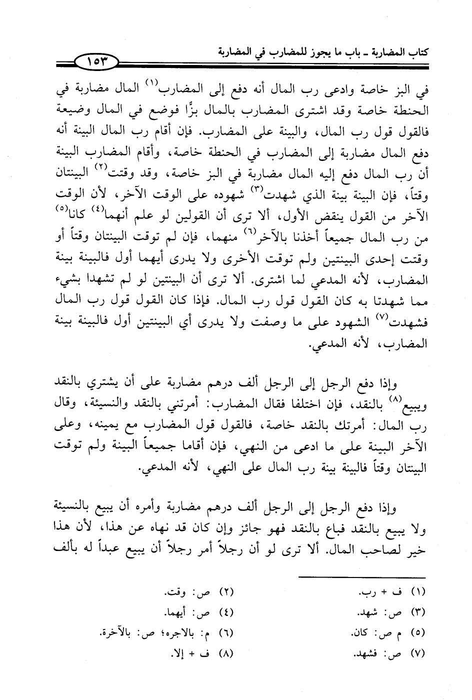 في البز خاصة وادعى رب المال أنه دفع إلى المضارب (¬1) المال مضاربة في الحنطة خاصة وقد اشترى المضارب بالمال بزًّا فوضع في المال وضيعة فالقول قول رب المال، والبينة على المضارب. فإن أقام رب المال البينة أنه دفع المال مضاربة إلى المضارب في الحنطة خاصة، وأقام المضارب البينة أن رب المال دفع إليه المال مضاربة في البز خاصة، وقد وقتت (¬2) البينتان وقتاً، فإن البينة بينة الذي شهدت (¬3) شهوده على الوقت الآخر، لأن الوقت الآخر من القول ينقض الأول، ألا ترى أن القولين لو علم أنهما (¬4) كانا (¬5) من رب المال جميعاً أخذنا بالآخر (¬6) منهما، فإن لم توقت البينتان وقتاً أو وقتت إحدى البينتين ولم توقت الأخرى ولا يدرى أيهما أول فالبينة بينة المضارب، لأنه المدعي لما اشترى. ألا ترى أن البينتين لو لم تشهدا بشيء مما شهدتا به كان القول قول رب المال. فإذا كان القول قول رب المال فشهدت (¬7) الشهود على ما وصفت ولا يدرى أي البينتين أول فالبينة بينة المضارب، لأنه المدعي.