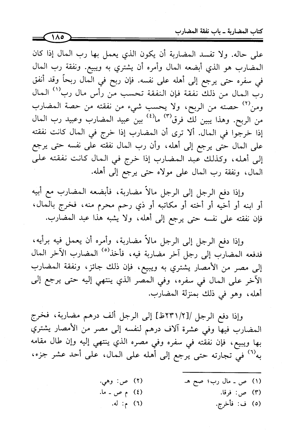 على حاله. ولا تفسد المضاربة أن يكون الذي يعمل بها رب المال إذا كان المضارب هو الذي أبضعه المال وأمره أن يشتري به ويبيع. ونفقة رب المال في سفره حتى يرجع إلى أهله على نفسه. فإن ربح في المال ربحاً وقد أنفق رب المال من ذلك نفقة فإن النفقة تحسب من رأس مال رب (¬1) المال ومن (¬2) حصته من الربح، ولا يحسب شيء من نفقته من حصة المضارب من الربح. وهذا يبين لك فرق (¬3) ما (¬4) بين عبيد المضارب وعبيد رب المال إذا خرجوا في المال. ألا ترى أن المضارب إذا خرج في المال كانت نفقته على المال حتى يرجع إلى أهله، وأن رب المال نفقته على نفسه حتى يرجع إلى أهله، وكذلك عبد المضارب إذا خرج في المال كانت نفقته على المال، ونفقة رب المال على مولاه حتى يرجع إلى أهله.