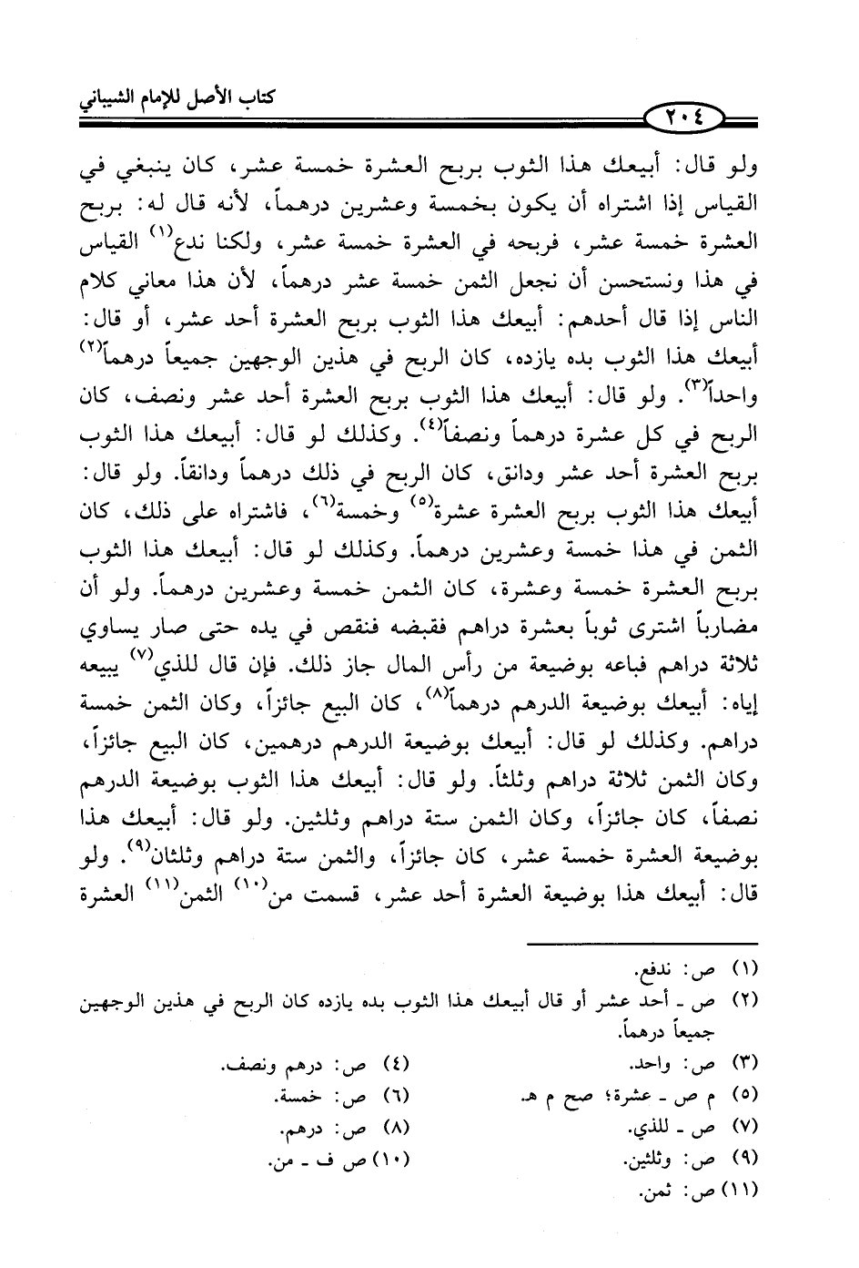 (¬2) ص - أحد عشر أو قال أبيعك هذا الثوب بده يازده كان الربح في هذين الوجهين جميعاً درهماً.