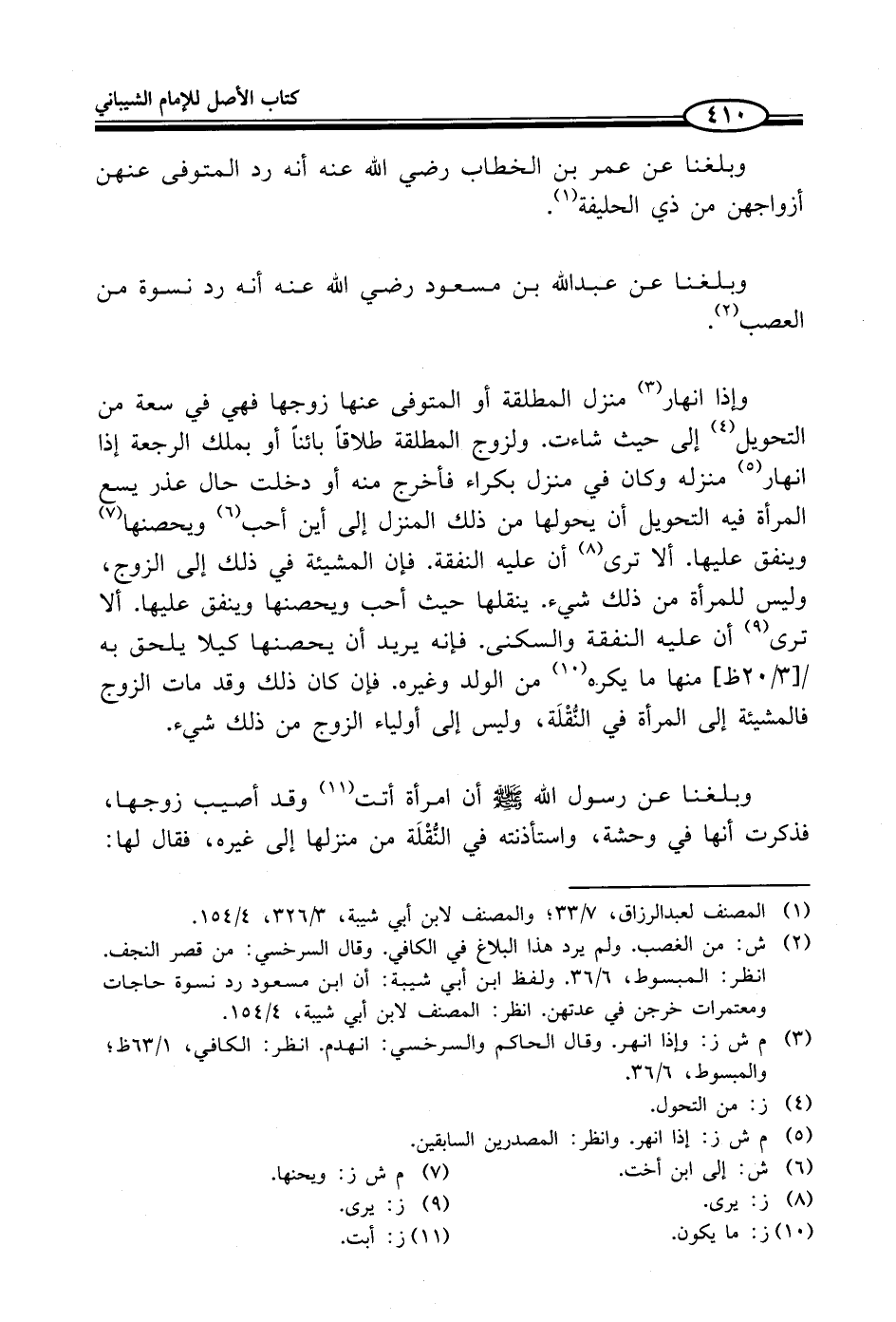 (¬2) ش: من الغصب. ولم يرد هذا البلاغ في الكافي. وقال السرخسي: من قصر النجف. انظر: المبسوط، 6/ 36. ولفظ ابن أبي شيبة: أن ابن مسعود رد نسوة حاجات ومعتمرات خرجن في عدتهن. انظر: المصنف لابن أبي شيبة، 4/ 154.