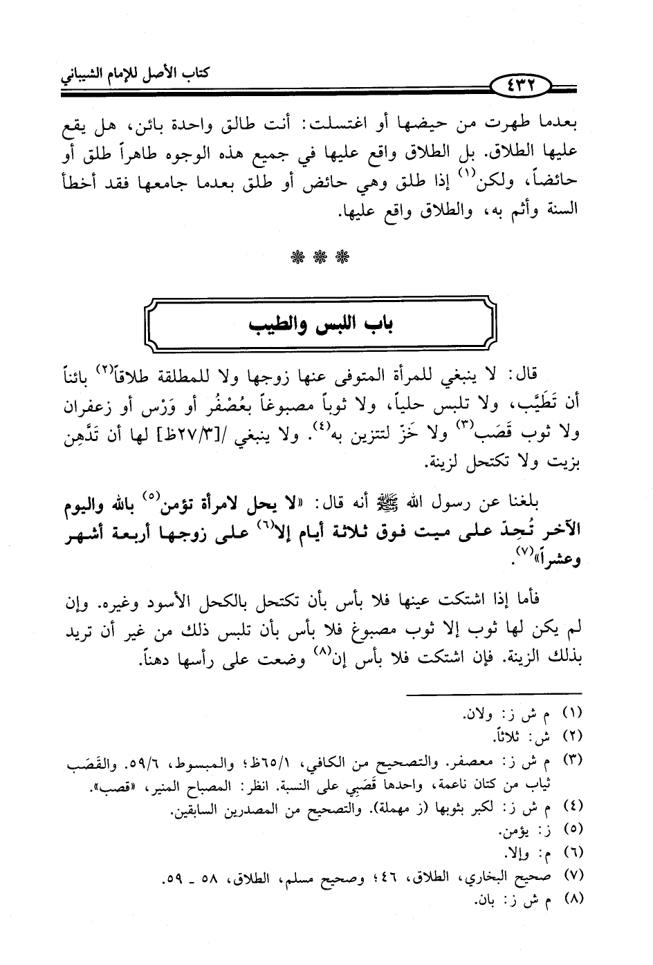 (¬3) م ش ز: معصفر. والتصحيح من الكافي، 1/ 65 ظ؛ والمبسوط، 6/ 59. والقَصَب ثياب من كتان ناعمة، واحدها قَصَبِي على النسبة. انظر: المصباح المنير، "قصب".