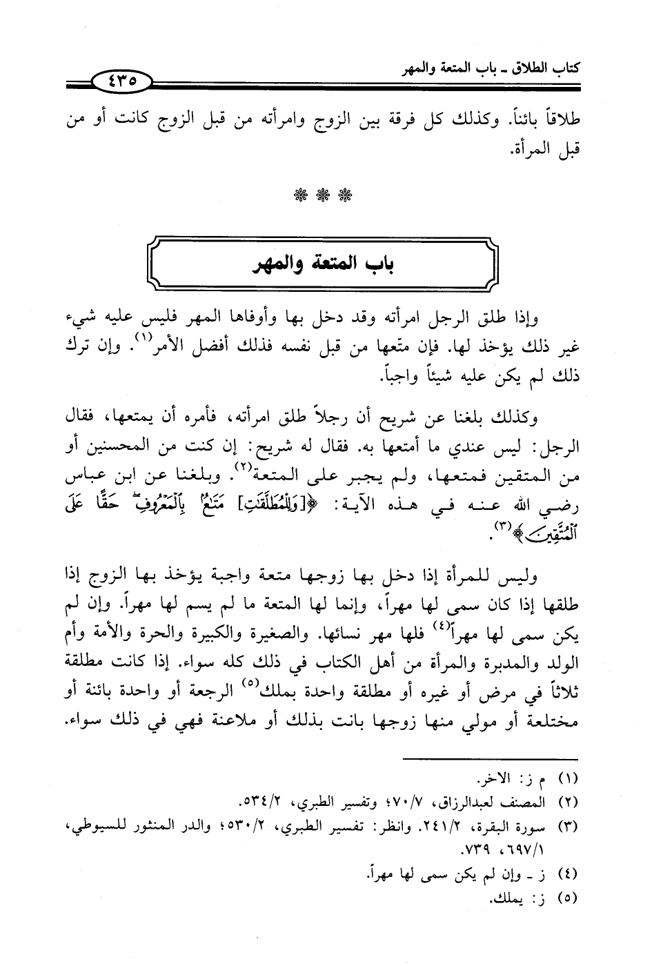 (¬3) سورة البقرة، 2/ 241. وانظر: تفسير الطبري، 2/ 530؛ والدر المنثور للسيوطي، 1/ 697، 739.