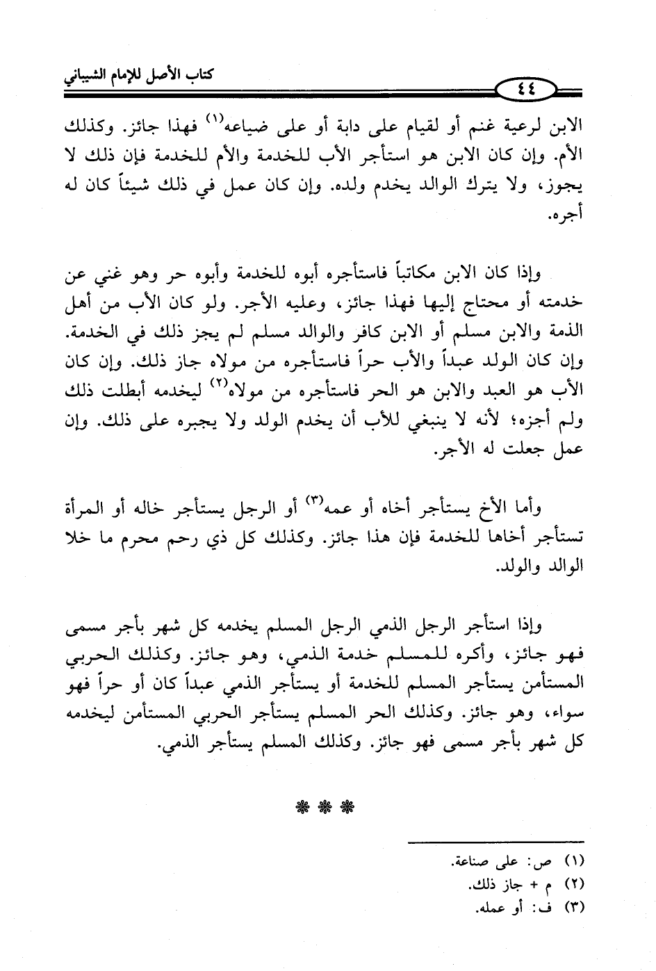 وإذا استأجر الرجل الذمي الرجل المسلم يخدمه كل شهر بأجر مسمى فهو جائز، وأكره للمسلم خدمة الذمي، وهو جائز. وكذلك الحربي المستأمن يستأجر المسلم للخدمة أو يستأجر الذمي عبداً كان أو حراً فهو سواء، وهو جائز. وكذلك الحر المسلم يستأجر الحربي المستأمن ليخدمه كل شهر بأجر مسمى فهو جائز. وكذلك المسلم يستأجر الذمي.