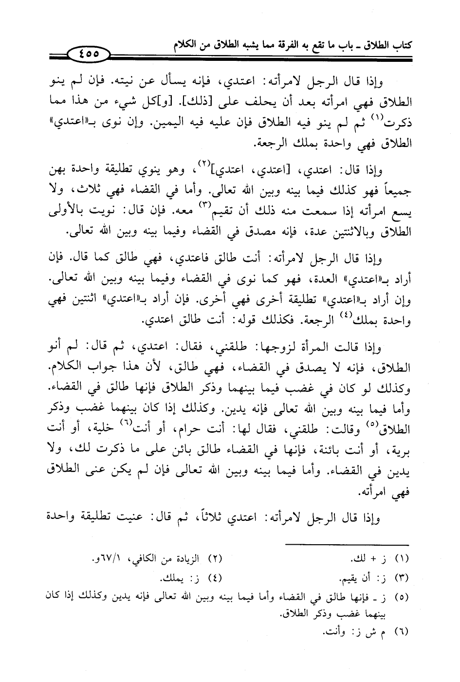 (¬5) ز - فإنها طالق في القضاء وأما فيما بينه وبين الله تعالى فإنه يدين وكذلك إذا كان بينهما غضب وذكر الطلاق.