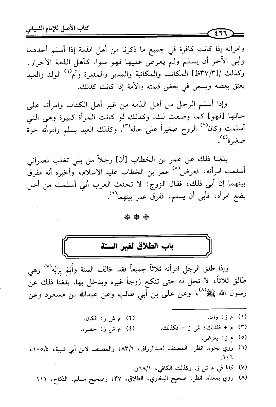 (¬8) روي بمعناه. انظر: صحيح البخاري، الطلاق، 37؛ وصحيح مسلم، النكاح، 111.