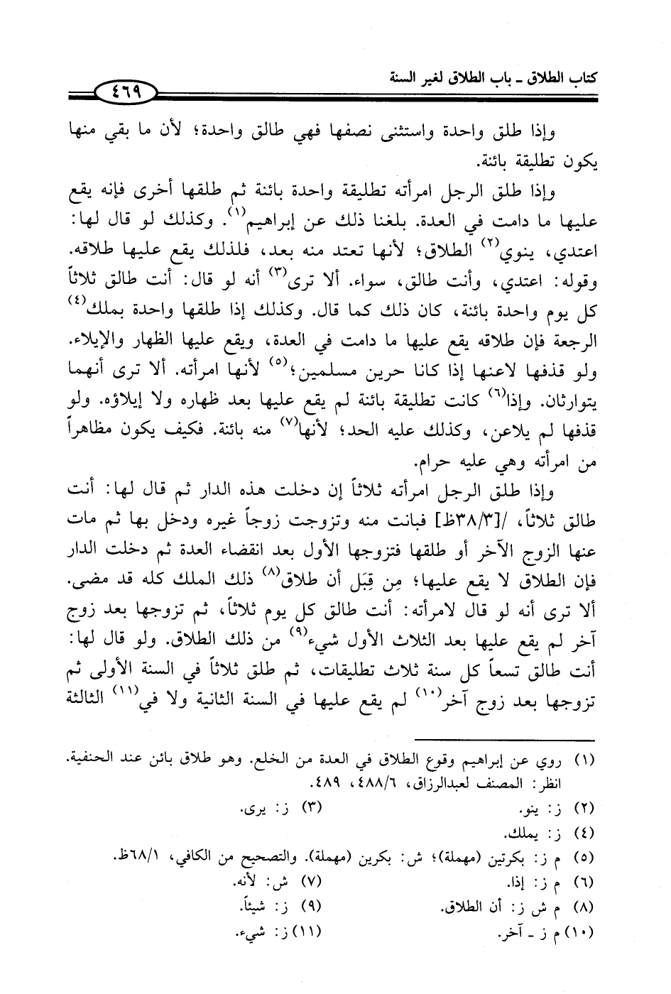 (¬1) روي عن إبراهيم وقوع الطلاق في العدة من الخلع. وهو طلاق بائن عند الحنفية. انظر: المصنف لعبد الرزاق، 6/ 488، 489.