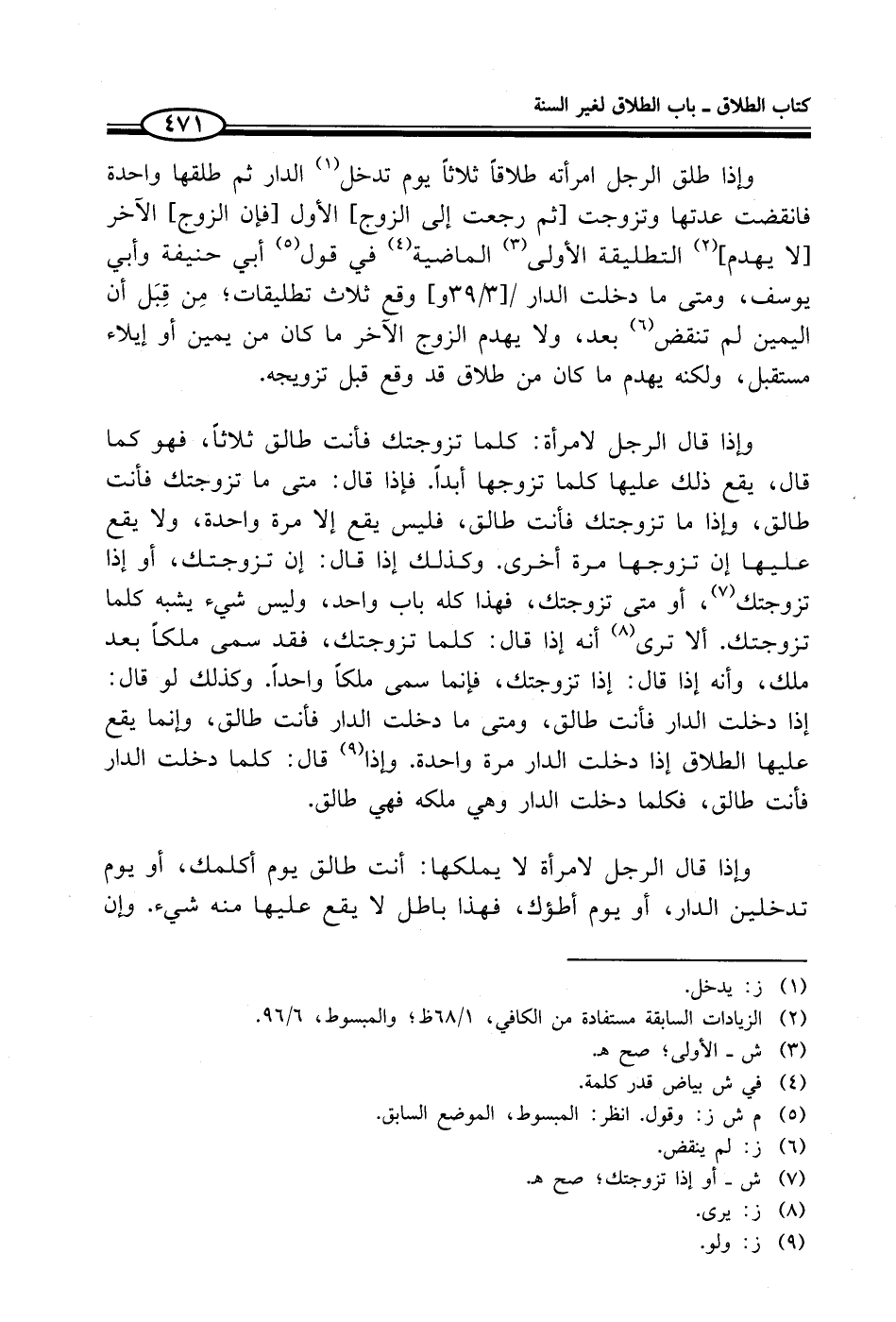 (¬2) الزيادات السابقة مستفادة من الكافي، 1/ 68 ظ؛ والمبسوط، 6/ 96.