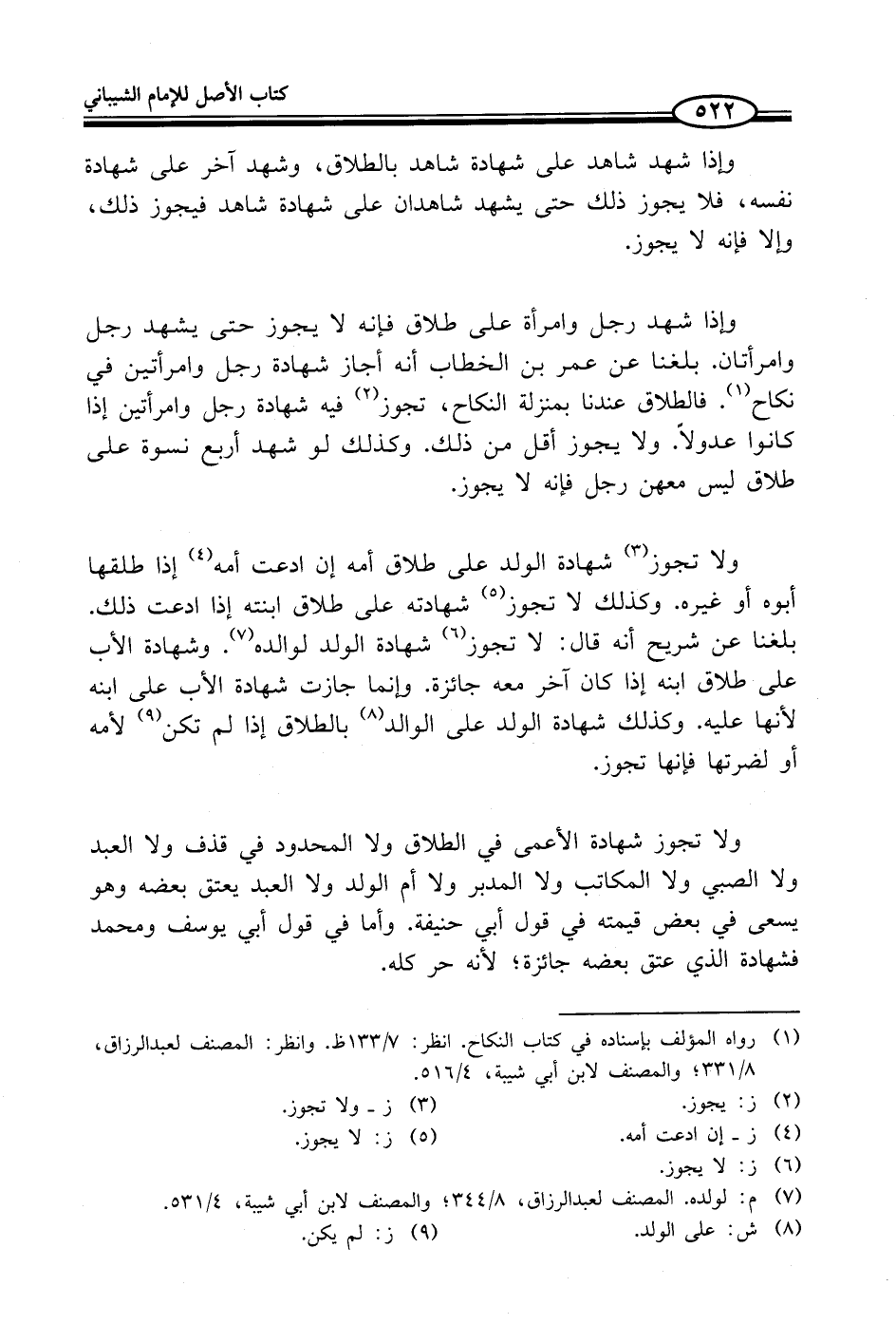ولا تجوز (¬3) شهادة الولد على طلاق أمه إن ادعت أمه (¬4) إذا طلقها أبوه أو غيره. وكذلك لا تجوز (¬5) شهادته على طلاق ابنته إذا ادعت ذلك. بلغنا عن شريح أنه قال: لا تجوز (¬6) شهادة الولد لوالده (¬7). وشهادة الأب على طلاق ابنه إذا كان آخر معه جائزة. وإنما جازت شهادة الأب على ابنه لأنها عليه. وكذلك شهادة الولد على الوالد (¬8) بالطلاق إذا لم تكن (¬9) لأمه أو لضرتها فإنها تجوز.