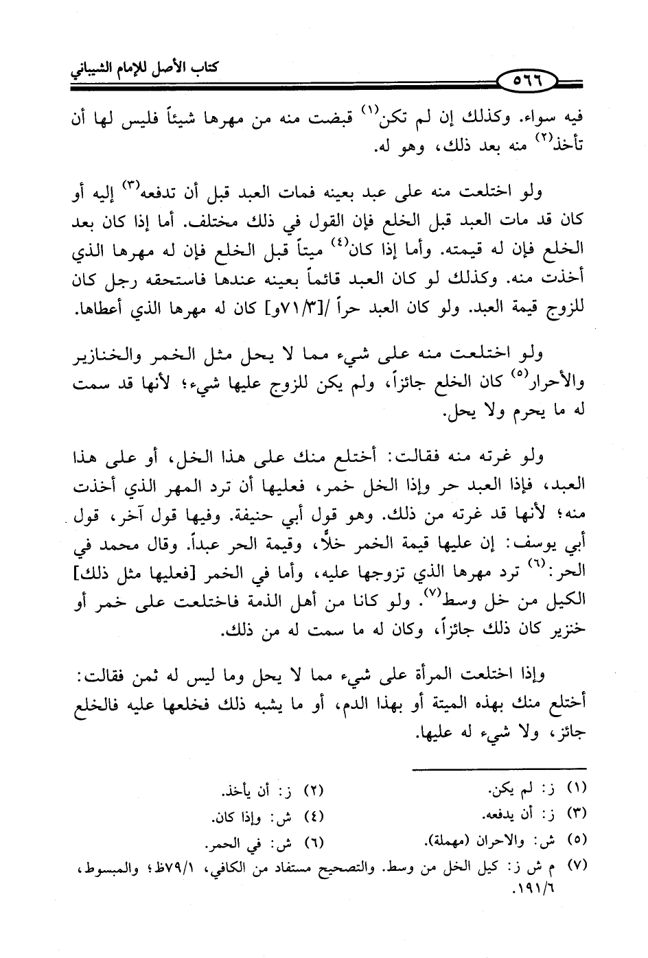 ولو غرته منه فقالت: أختلع منك على هذا الخل، أو على هذا العبد، فإذا العبد حر وإذا الخل خمر؛ فعليها أن ترد المهر الذي أخذت منه؛ لأنها قد غرته من ذلك. وهو قول أبي حنيفة. وفيها قول آخر، قول أبي يوسف: إن عليها قيمة الخمر خلاً، وقيمة الحر عبداً. وقال محمد في الحر: (¬6) ترد مهرها الذي تزوجها عليه، وأما في الخمر [فعليها مثل ذلك] الكيل من خل وسط (¬7). ولو كانا من أهل الذمة فاختلعت على خمر أو خنزير كان ذلك جائزاً، وكان له ما سمت له من ذلك.