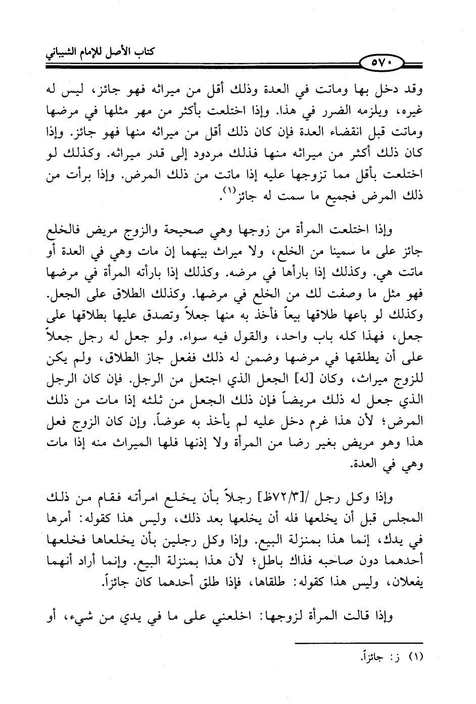 وقد دخل بها وماتت في العدة وذلك أقل من ميراثه فهو جائز، ليس له غيره، ويلزمه الضرر في هذا. وإذا اختلعت بأكثر من مهر مثلها في مرضها وماتت قبل انقضاء العدة فإن كان ذلك أقل من ميراثه منها فهو جائز. وإذا كان ذلك أكثر من ميراثه منها فذلك مردود إلى قدر ميراثه. وكذلك لو اختلعت بأقل مما تزوجها عليه إذا ماتت من ذلك المرض. وإذا برأت من ذلك المرض فجميع ما سمت له جائز (¬1).