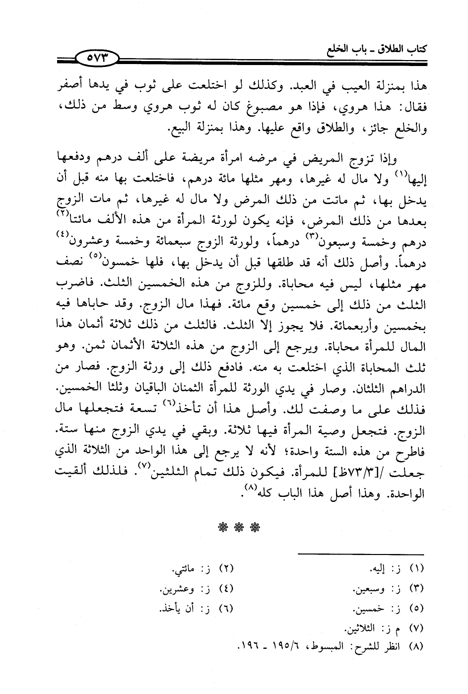 (¬8) انظر للشرح: المبسوط، 6/ 195 - 196.