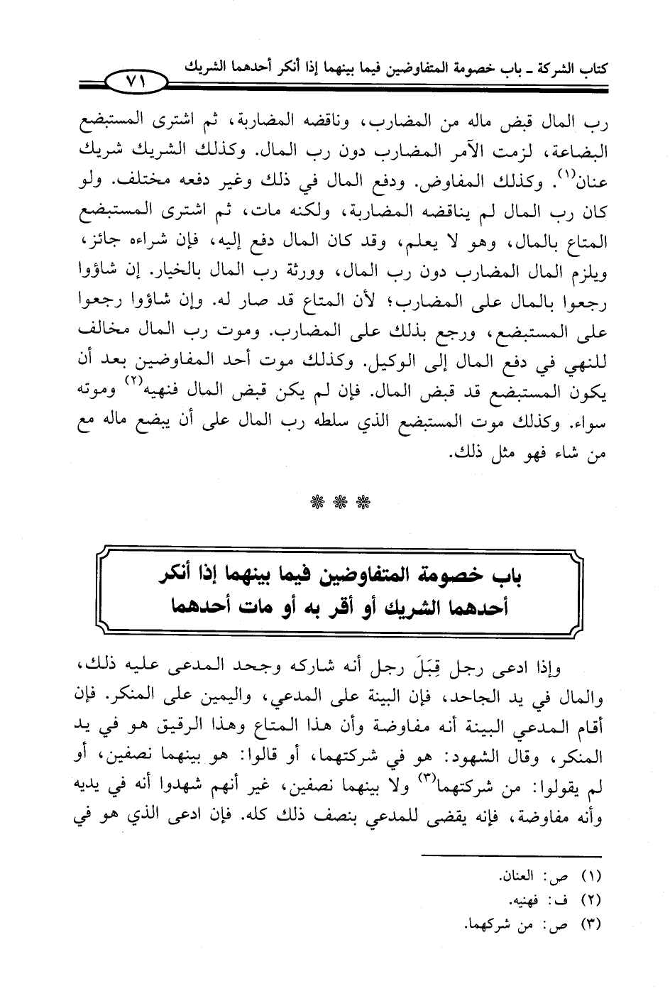باب خصومة المتفاوضين فيما بينهما إذا أنكر أحدهما الشريك أو أقر به أو مات أحدهما