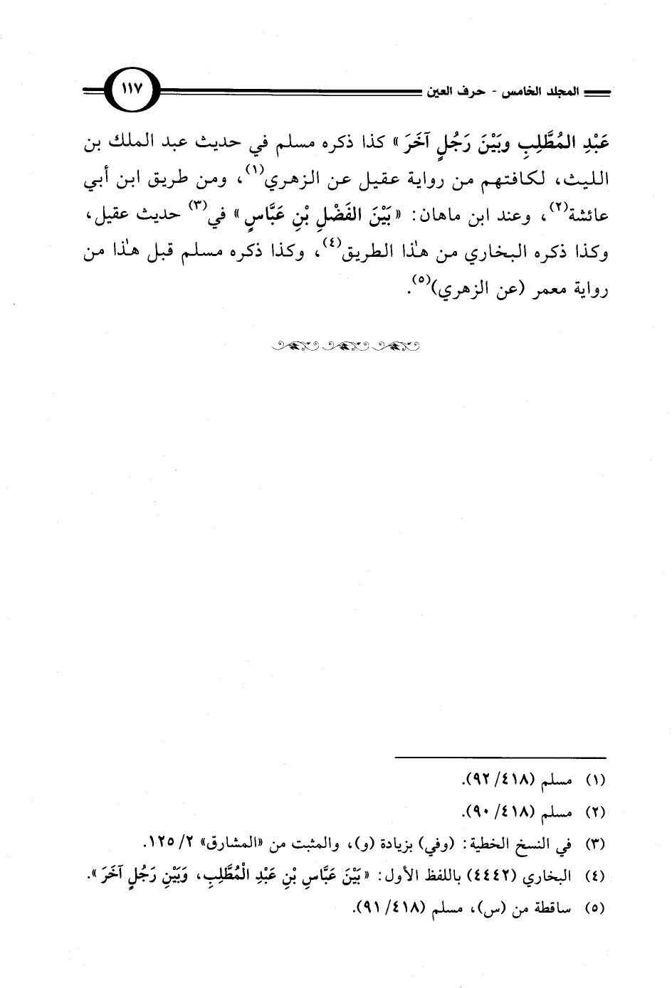 عَبْدِ المُطَّلِبِ وبَيْنَ رَجُلٍ اَخَرَ" كذا ذكره مسلم في حديث عبد الملك بن الليث، لكافتهم من رواية عقيل عن الزهري (¬1)، ومن طريق ابن أبي عائشة (¬2)، وعند ابن ماهان: "بَيْنَ الفَضْلِ بْنِ عَبَّاسٍ" في (¬3) حديث عقيل، وكذا ذكره البخاري من هذا الطريق (¬4)، وكذا ذكره مسلم قبل هذا من رواية معمر (عن الزهري) (¬5).